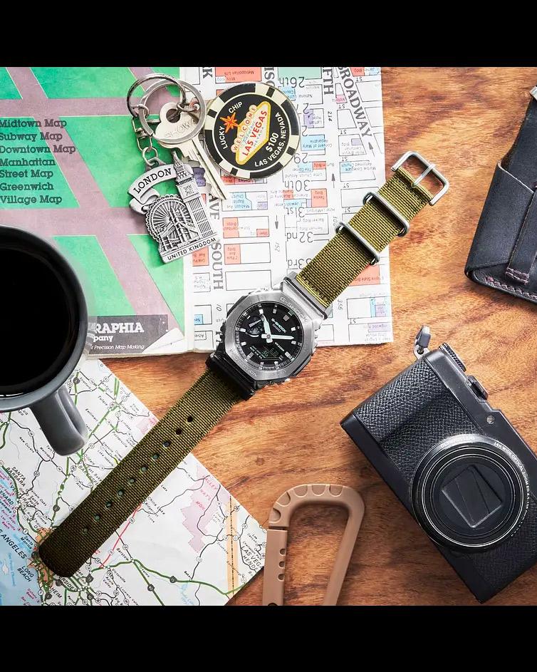 Мужские наручные часы Casio G-Shock GM-2100CB-3A. Точный кварцевый механизм с аналого-цифровой индикацией. Корпус изготовлен из высококачественной нержавеющей стали 316L с высокими антикоррозийными свойствами. Светодиодная подсветка. На циферблате отображается текущее число, месяц и день недели. Ударопрочная конструкция часов защищает от ударов и вибрации. Функция хронографа. Функция таймера. Таймеры обратного отсчета напомнят Вам о текущих или особенных событиях, издав звуковой сигнал в установленное время. Функция будильника. Аккумулятор обеспечивает часы достаточным питанием приблизительно на 3 года. Отображение текущего времени в основных городах и конкретных областях по всему миру. После настройки автоматический календарь всегда отображает точную дату. Отображение времени возможно в 12-часовом или 24-часовом формате. Текстильный ремешок. Прочное, устойчивое к царапинам минеральное стекло защищает часы от повреждений. Часы являются водонепроницаемыми до 20 Бар. Цвет корпуса: Серый. Цвет циферблата: Черный. Ширина (с заводной головкой): 49мм. Толщина: 12мм. Гарантия: 2 года. Другие наименования модели: GM-2100CB-3AER.