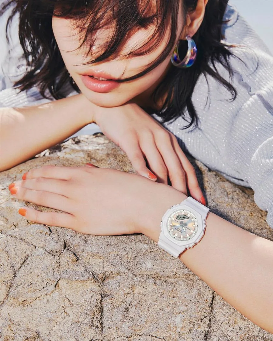 Эти часы сочетают в себе инновационные технологии и экологичную сознательность. Их главной эстетической особенностью является циферблат с поляризованным напылением, который создает игру цвета и яркости при каждом движении запястья. Модель изготовлена из биопластика, получаемого из возобновляемых источников, что подчеркивает заботу об окружающей среде.