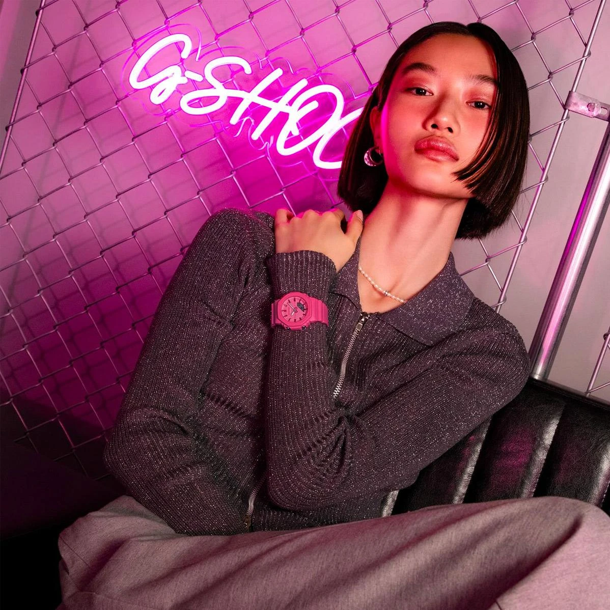 Женские наручные часы Casio G-Shock GMA-P2100PP-4A. Точный кварцевый механизм с аналого-цифровой индикацией. Отображение текущего времени в основных городах и конкретных областях по всему миру. Ударопрочная конструкция часов защищает от ударов и вибрации. Функция будильника. Функция таймера. Таймеры обратного отсчета напомнят Вам о текущих или особенных событиях, издав звуковой сигнал в установленное время. Для подсветки дисплея используется светодиод, а так же имеет функцию автоматического включения подсветки, если Вы наклоните часы к своему лицу. Ежечасный сигнал. Отображение времени возможно в 12-часовом или 24-часовом формате. Аккумулятор обеспечивает часы достаточным питанием приблизительно на 3 года. Прочное, устойчивое к царапинам минеральное стекло защищает часы от повреждений. На циферблате отображается текущее число, месяц и день недели. Часы являются водонепроницаемыми до 3 Бар. Цвет циферблата: Розовый. Цвет корпуса: Розовый. Светодиодная подсветка. Толщина: 11 мм. Гарантия: 2 года.