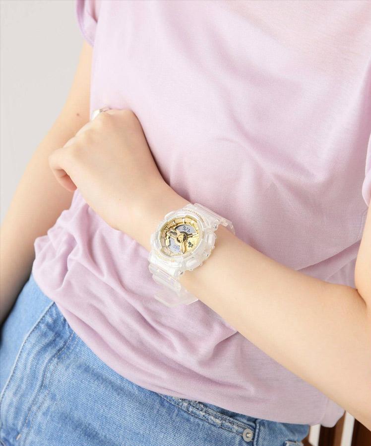 Женские наручные часы Casio G-Shock GMA-S110SG-7A. Точный кварцевый механизм с аналого-цифровой индикацией. Полимерный ремешок. Натуральный полимерный материал является идеальным для изготовления ремешка благодаря своей чрезвычайной прочности и гибкости. После настройки автоматический календарь всегда отображает точную дату. Аккумулятор обеспечивает часы достаточным питанием приблизительно на 2 года. Функция будильника. Функция хронографа. Отображение текущего времени в основных городах и конкретных областях по всему миру. Функция таймера. Таймеры обратного отсчета напомнят Вам о текущих или особенных событиях, издав звуковой сигнал в установленное время. Ударопрочная конструкция часов защищает от ударов и вибрации. Отображение времени возможно в 12-часовом или 24-часовом формате. Полимерный ремешок. Натуральный полимерный материал является идеальным для изготовления ремешка благодаря своей чрезвычайной прочности и гибкости. Прочное, устойчивое к царапинам минеральное стекло защищает часы от повреждений. На циферблате отображается текущее число, месяц и день недели. Часы являются водонепроницаемыми до 20 Бар. Цвет циферблата: Белый. Цвет корпуса: Золотистый. Светодиодная подсветка. Толщина: 16 мм. Гарантия: 2 года.