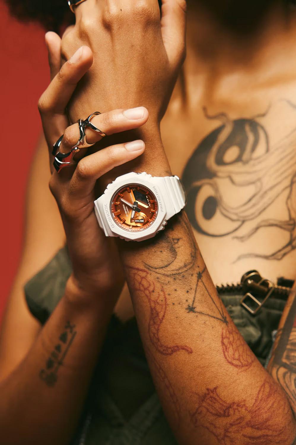 Женские наручные часы Casio G-Shock GMA-S2100WS-7A. Точный кварцевый механизм с аналого-цифровой индикацией. Корпус карбоновый. Карбон отличается антикоррозийностью, гипоаллергенностью и легкостью. На циферблате отображается текущее число, месяц и день недели. Ударопрочная конструкция часов защищает от ударов и вибрации. Функция хронографа. Функция таймера. Таймеры обратного отсчета напомнят Вам о текущих или особенных событиях, издав звуковой сигнал в установленное время. Функция будильника. Аккумулятор обеспечивает часы достаточным питанием приблизительно на 3 года. Отображение текущего времени в основных городах и конкретных областях по всему миру. После настройки автоматический календарь всегда отображает точную дату. Отображение времени возможно в 12-часовом или 24-часовом формате. Полимерный ремешок. Натуральный полимерный материал является идеальным для изготовления ремешка благодаря своей чрезвычайной прочности и гибкости. Прочное, устойчивое к царапинам минеральное стекло защищает часы от повреждений. Часы являются водонепроницаемыми до 20 Бар. Цвет корпуса: Белый. Цвет циферблата: Оранжевый. Ширина (с заводной головкой): 46мм. Толщина: 11мм. Гарантия: 2 года.