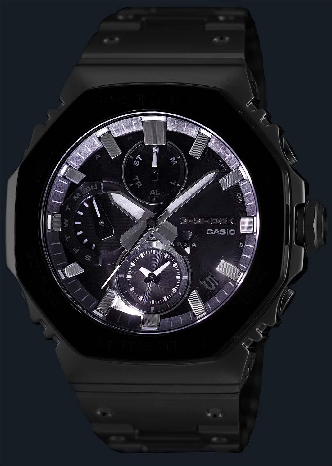 Мужские часы G-Shock. Модель собирается в Японии на производстве Casio в Ямагата. Питание от солнечной энергии Tough Solar. Индикатор заряда батареи. Функция автоматического сохранения энергии. Время работы аккумулятора без подзарядки — 5 месяцев, при включенной функции сохранения энергии — 18 месяцев. Противоударный корпус защищает механизм от ударов и вибрации. Циферблат подсвечивается ярким светодиодом. Настраиваемое послесвечение. Цвет подсветки: белый. Необритовое светонакопительное покрытие обеспечивает длительное послесвечение в темноте даже после кратковременного нахождения на свету.