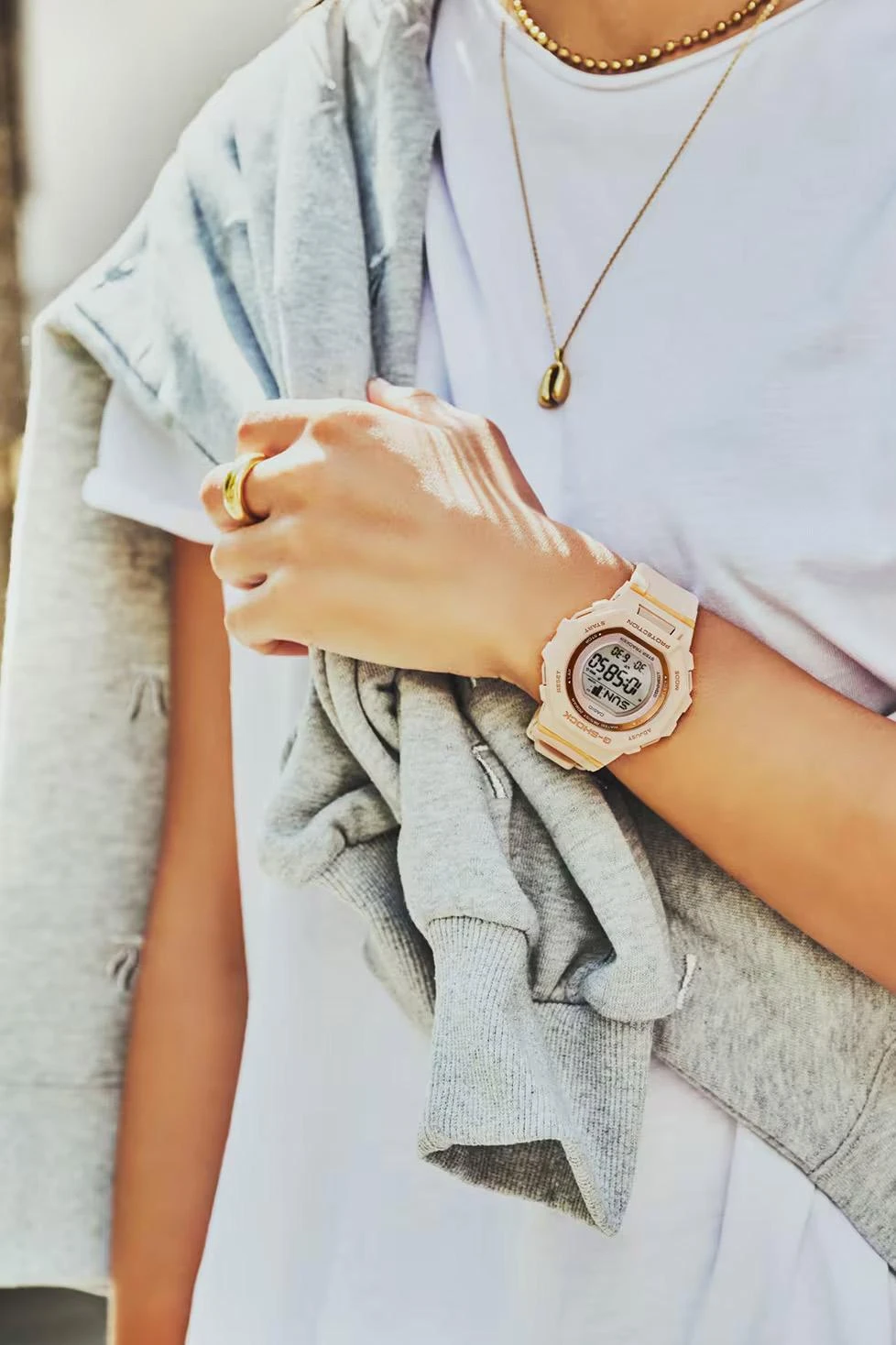 Женские наручные часы Casio G-Shock GMD-B300-4E. Точный кварцевый механизм с цифровой индикацей. Полимерный ремешок. Натуральный полимерный материал является идеальным для изготовления ремешка благодаря своей чрезвычайной прочности и гибкости. После настройки автоматический календарь всегда отображает точную дату. Аккумулятор обеспечивает часы достаточным питанием приблизительно на 2 года. Функция Bluetooth позволяет удобно отображать все метрики с часов на экране смартфона, а также выводить на часы уведомления о входящих звонках, сообщениях и имейлах. Функция будильника. Ежечасный сигнал. Функция хронографа. Индикатор запаса хода. Отображение текущего времени в основных городах и конкретных областях по всему миру. Шагомер. Функция таймера. Таймеры обратного отсчета напомнят Вам о текущих или особенных событиях, издав звуковой сигнал в установленное время. Ударопрочная конструкция часов защищает от ударов и вибрации. Отображение времени возможно в 12-часовом или 24-часовом формате. Полимерный ремешок. Натуральный полимерный материал является идеальным для изготовления ремешка благодаря своей чрезвычайной прочности и гибкости. Прочное, устойчивое к царапинам минеральное стекло защищает часы от повреждений. На циферблате отображается текущее число, месяц, год и день недели. Часы являются водонепроницаемыми до 20 Бар. Цвет циферблата: Бежевый. Цвет корпуса: Бежевый. Цвет корпуса: Золотистый. Светодиодная подсветка. Высота (с ушками): 46 мм. Толщина: 12 мм. Гарантия: 2 года.