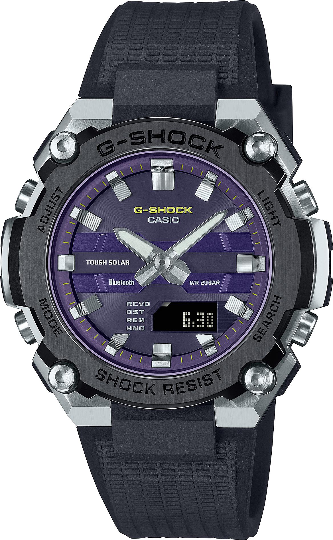 Мужские наручные часы Casio G-Shock GST-B600A-1A6. Точный кварцевый механизм с аналого-цифровой индикацией. Полимерный ремешок. Натуральный полимерный материал является идеальным для изготовления ремешка благодаря своей чрезвычайной прочности и гибкости. После настройки автоматический календарь всегда отображает точную дату. Для подсветки дисплея используется светодиод, а так же имеет функцию автоматического включения подсветки, если Вы наклоните часы к своему лицу. Функция Bluetooth позволяет удобно отображать все метрики с часов на экране смартфона, а также выводить на часы уведомления о входящих звонках, сообщениях и имейлах. Функция будильника. Функция хронографа. Отображение текущего времени в основных городах и конкретных областях по всему миру. Функция перемещения стрелок. Нажатие на кнопку обеспечит перемещение стрелок в такое положение, которое позволит Вам легко считать информацию с маленьких цифровых дисплеев – например, дату или показатели секундомера. Солнечная батарейка. Солнечная подзаряжающаяся батарейка обеспечивает питание часов для работы. Функция таймера. Таймеры обратного отсчета напомнят Вам о текущих или особенных событиях, издав звуковой сигнал в установленное время. Ударопрочная конструкция часов защищает от ударов и вибрации. Отображение времени возможно в 12-часовом или 24-часовом формате. Браслет из нержавеющей стали. Прочное, устойчивое к царапинам минеральное стекло защищает часы от повреждений. На циферблате отображается текущее число, месяц и день недели. Часы являются водонепроницаемыми до 20 Бар. Цвет циферблата: Черный. Цвет корпуса: Фиолетовый. Светодиодная подсветка. Высота (с ушками): 42 мм. Толщина: 11 мм. Гарантия: 2 года.