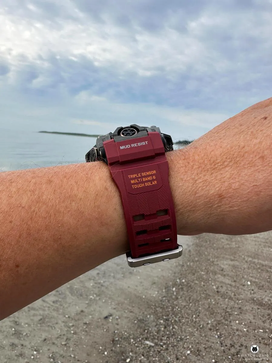 Мужские наручные часы Casio G-Shock GWG-B1000-1A4. Точный кварцевый механизм с аналого-цифровой индикацией. Полимерный ремешок. Натуральный полимерный материал является идеальным для изготовления ремешка благодаря своей чрезвычайной прочности и гибкости. Для подсветки дисплея используется светодиод, а так же имеет функцию автоматического включения подсветки, если Вы наклоните часы к своему лицу. Специальный датчик измеряет давление воздуха и отображает измеренное значение на экране в виде символа. Это дает возможность заранее определить изменения погоды. Функция Bluetooth позволяет удобно отображать все метрики с часов на экране смартфона, а также выводить на часы уведомления о входящих звонках, сообщениях и имейлах. Функция будильника. Встроенный цифровой компас определяет северный магнитный полюс. Отображение текущего времени в основных городах и конкретных областях по всему миру. Функция перемещения стрелок. Нажатие на кнопку обеспечит перемещение стрелок в такое положение, которое позволит Вам легко считать информацию с маленьких цифровых дисплеев – например, дату или показатели секундомера. Радио-синхронизация. Часы будут получать радио-сигнал калибровки, гарантирующий, что они всегда будут показывать точное время. Модель оснащена технологией SMART ACCESS, обеспечивающей быстрый и интуитивно понятный доступ ко всем важным функциям часов с помощью электронной заводной головки. Солнечная батарейка. Солнечная подзаряжающаяся батарейка обеспечивает питание часов для работы. Функция таймера. Таймеры обратного отсчета напомнят Вам о текущих или особенных событиях, издав звуковой сигнал в установленное время. Термометр. Датчик измеряет температуру окружающего воздуха вокруг часов и отображает ее на экране в градусах. Ударопрочная конструкция часов защищает от ударов и вибрации. Данные о восходе/закате солнца. После введения географического местоположения, на экране будет отображаться восход и закат солнца для любой установленной даты. Отображение времени возможно в 12-часовом или 24-часовом формате. Высотомер (альтиметр). Встроенный датчик давления определяет изменения в атмосферном давлении и преобразовывает полученные результаты в абсолютную высоту. Полимерный ремешок. Натуральный полимерный материал является идеальным для изготовления ремешка благодаря своей чрезвычайной прочности и гибкости. Сапфировое стекло. Искусственно изготовленное стекло с высокой прочностью и устойчивостью к царапинам. Часы являются водонепроницаемыми до 20 Бар. Цвет циферблата: Розовое золото. Цвет корпуса: Черный. Светодиодная подсветка. Толщина: 16 мм. Гарантия: 2 года.