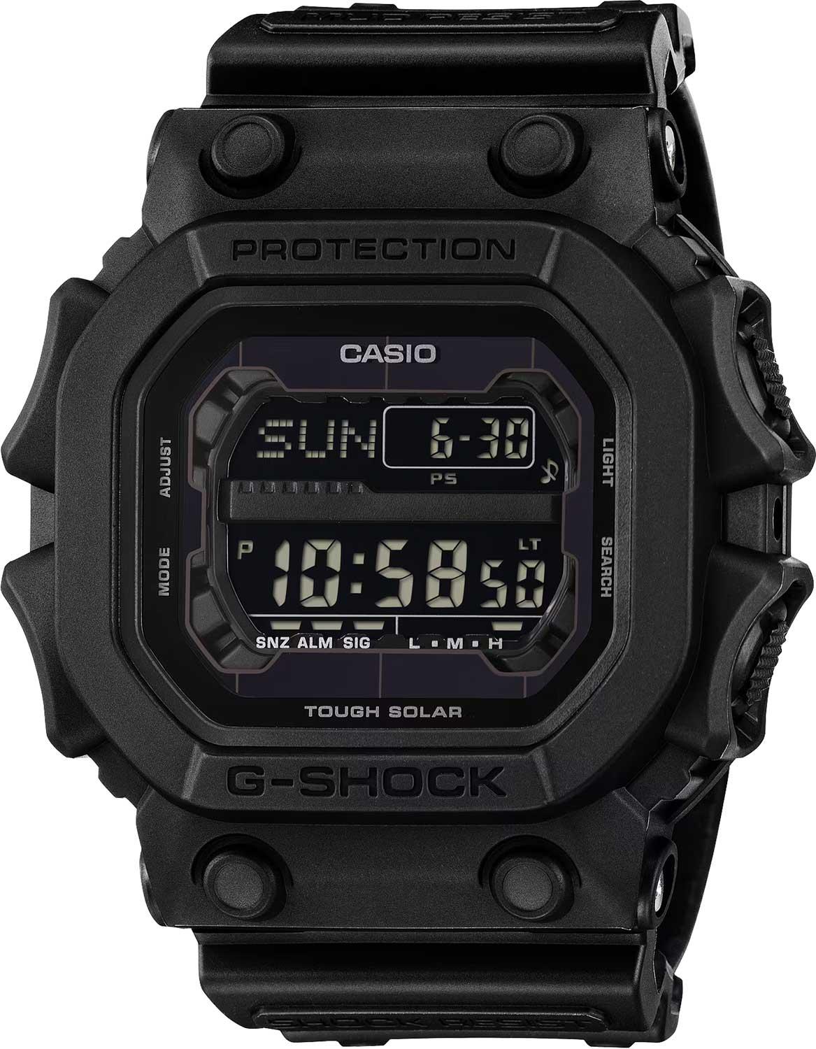 Мужские часы Casio G-Shock GX-56UBB-1E. Питание от солнечной энергии Tough Solar — солнечные батарейки большой мощности. Индикатор заряда батареи. Функция автоматического сохранения энергии (отключает LCD дисплей). Время работы аккумулятора без подзарядки — 13 месяцев, при включенной функции сохранения энергии — 27 месяцев. Противоударный корпус защищает механизм от ударов и вибрации. Защита от попадания внутрь пыли и грязи. Светодиодная подсветка (Super Illuminator). Полностью автоматическая светодиодная подсветка, выбираемая продолжительность свечения (1,5 или 3 секунды), послесвечение. 12-ти и 24-х часовой формат времени. Секундомер с точностью показаний 1/100с и временем измерения 24ч. Секундомер с функцией SPLIT. Таймер обратного отсчета времени от 1мин до 24ч. Мировое время – 38 городов (31 часовой пояс), всемирное координированное время (UTC). 5 ежедневных будильников. Ежечасный сигнал. Полностью автоматический календарь (до 2099 года). Функции включения/отключения летнего времени и включения/отключения звука. Задняя крышка крепится на 4-х винтах. Ремешок с классической застежкой.