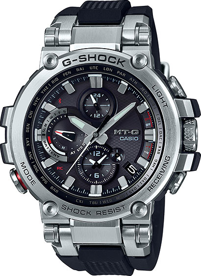 Многофункциональные часы из премиальной линейки CASIO MT-G в стальном корпусе с сапфировым стеклом. Из полезных функций: автоматическая коррекция времени по радиосигналам точного времени, питание от солнечных батарей, функций управления со смартфона