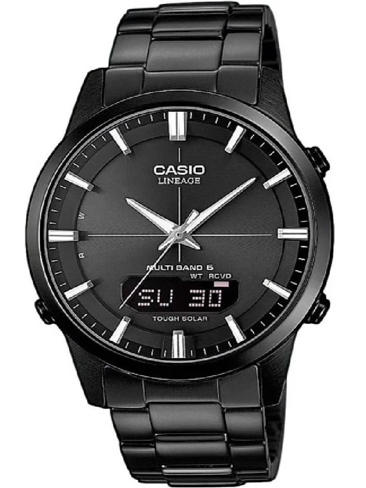 Мужские наручные часы Casio Lineage LCW-M170DB-1A. Точный кварцевый механизм с аналого-цифровой индикацией. В отличие от механических часов, не требуют завода и работают от батареи, показывая отклонение всего несколько секунд в месяц. Светодиодная подсветка обеспечивает равномерное и энергоэффективное освещение циферблата. Для активации обычно требуется нажатие отдельной кнопки, что позволяет экономить заряд батареи.Браслет из нержавеющей стали обладает высокой прочностью и износостойкостью, обеспечивая долговечность даже при активной эксплуатации. Материал устойчив к коррозии и сохраняет свой внешний вид надолго. После настройки автоматический календарь всегда отображает точную дату. Функция будильника. Функция хронографа. Индикатор запаса хода. Отображение текущего времени в основных городах и конкретных областях по всему миру. Радио-синхронизация. Часы будут получать радио-сигнал калибровки, гарантирующий, что они всегда будут показывать точное время. Солнечная батарейка. Солнечная подзаряжающаяся батарейка обеспечивает питание часов для работы. Функция таймера. Таймеры обратного отсчета напомнят Вам о текущих или особенных событиях, издав звуковой сигнал в установленное время. Отображение времени возможно в 12-часовом или 24-часовом формате. Корпус изготовлен из высококачественной нержавеющей стали 316L с высокими антикоррозийными свойствами. Сапфировое стекло. Искусственно изготовленное стекло с высокой прочностью и устойчивостью к царапинам. Часы являются водонепроницаемыми до 5 Бар. Цвет корпуса: Черный. Цвет циферблата: Черный. Толщина: 9 мм. Гарантия: 2 года. Другие наименования модели: LCW-M170DB-1AER.