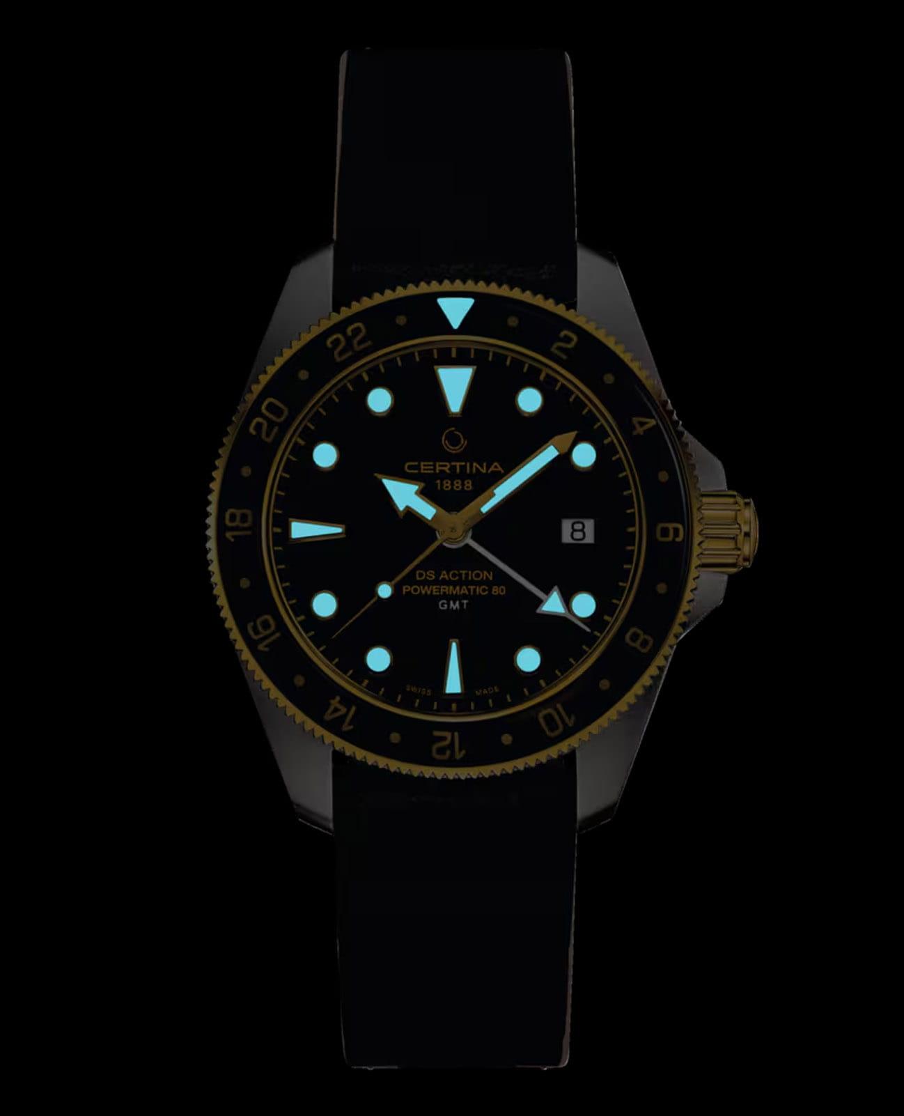 Швейцарские механические наручные мужские часы с автоподзаводом Certina DS Action GMT Powermatic 80 C032.929.26.051.00 на кожаном ремешке помогут путешественникам следить за точным временем дома и в пункте назначения. Автоматический калибр Powermatic 80.611 обеспечивает часам DS Action Diver максимальную точность хода в лучших традициях швейцарского часового искусства. Модель оснащена механизмом с автоподзаводом: наручные часы будут подзаряжаться от движения вашего запястья. В часах можно плавать и заниматься водными видами спорта, так как водозащита составляет 20 Бар.