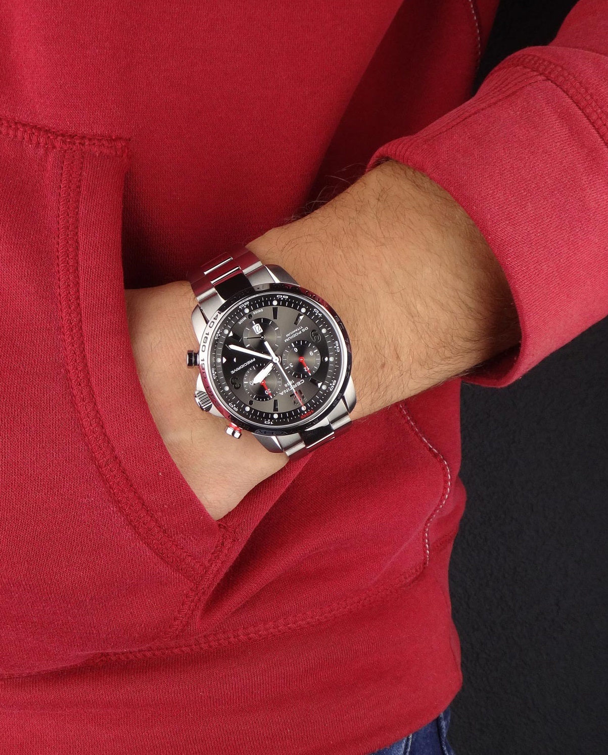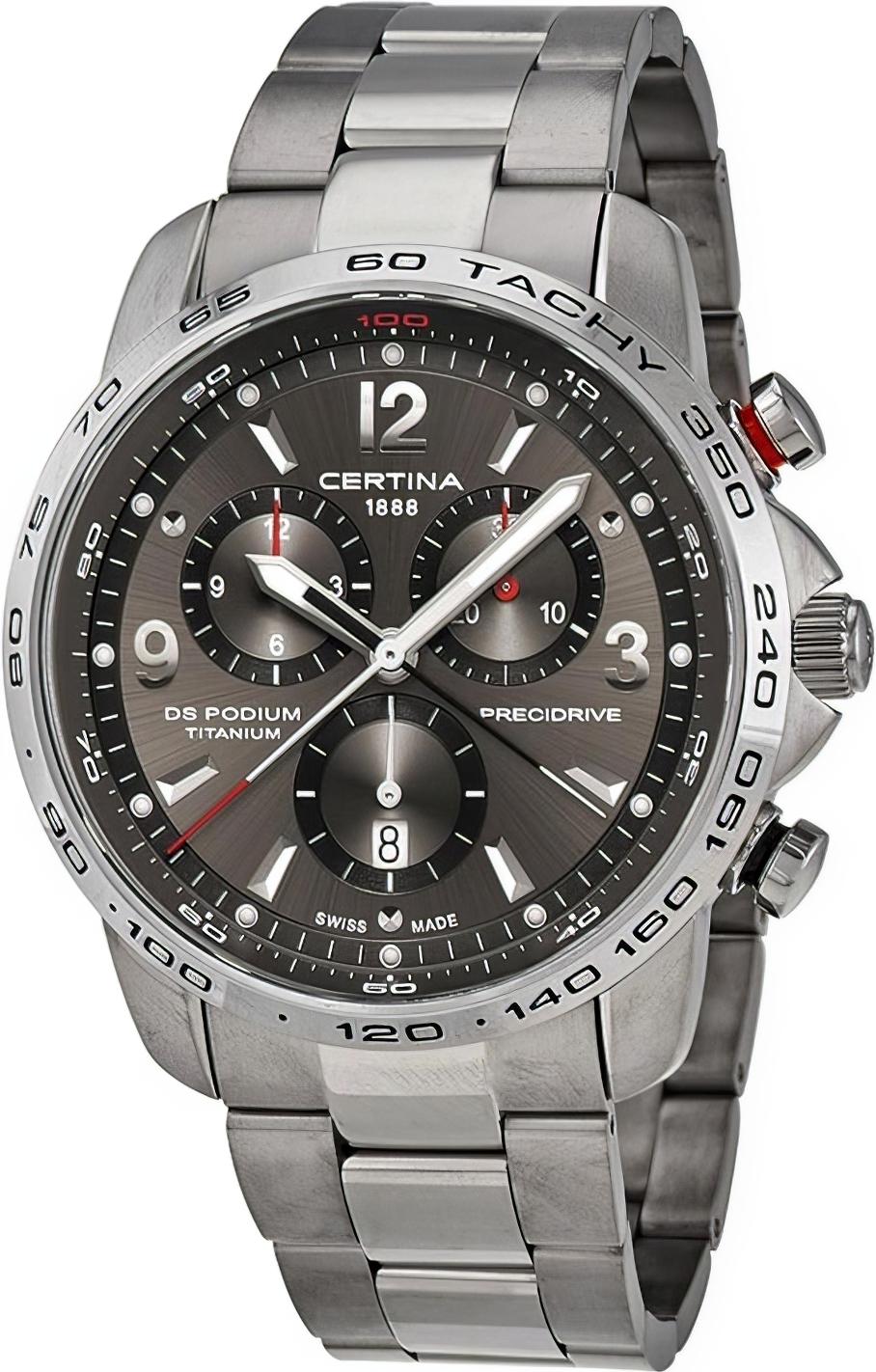 Мужские наручные часы Certina DS Podium C001.647.44.087.00. Точный кварцевый механизм с аналоговой индикацией. Корпус изготовлен из высокопросчного титана. На стрелки и отметки нанесен светонакопительный состав, благодаря этому считывать информацию с циферблата возможно и в темноте. На циферблате отображается текущее число месяца. Хронограф. Титановый браслет. Сапфировое стекло. Искусственно изготовленное стекло с высокой прочностью и устойчивостью к царапинам. Часы являются водонепроницаемыми до 20 Бар. Цвет корпуса: Серебристый. Цвет циферблата: Серый. Ширина (с заводной головкой): 44мм. Толщина: 13мм. Гарантия: 2 года.