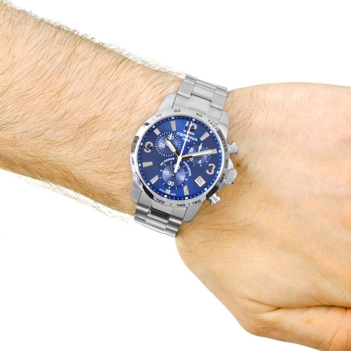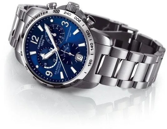 Швейцарские часы из серии DS Podium Chronograph 1/10 sec для мужчин. Круглый корпус и литой браслет из нерж. стали. Сапфировое стекло. Водостойкость 10 АТМ. Суперточный кварцевый механизм, хронограф с показом 1/10 долей сек.