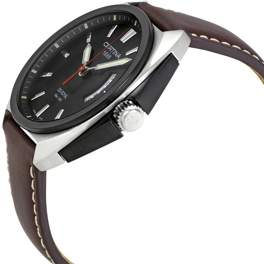 Certina Мужские швейцарские часы DS Royal C010.410.16.051.00. Точный кварцевый механизм с аналоговой индикацией. В отличие от механических часов, не требуют завода и работают от батареи, показывая отклонение всего несколько секунд в месяц. На стрелки и отметки нанесен светонакопительный состав, благодаря этому считывать информацию с циферблата возможно и в темноте. Ремешок изготовлен из кожи. Гибкость такого ремешка позволяет точно регулировать посадку часов на руке. Корпус изготовлен из высококачественной нержавеющей стали 316L с высокими антикоррозийными свойствами. Сапфировое стекло. Искусственно изготовленное стекло с высокой прочностью и устойчивостью к царапинам. Часы являются водонепроницаемыми до 10 Бар. Цвет корпуса: Серебристый. Цвет корпуса: Черный. Цвет циферблата: Черный. Толщина: 11.5 мм. Гарантия: 2 года.