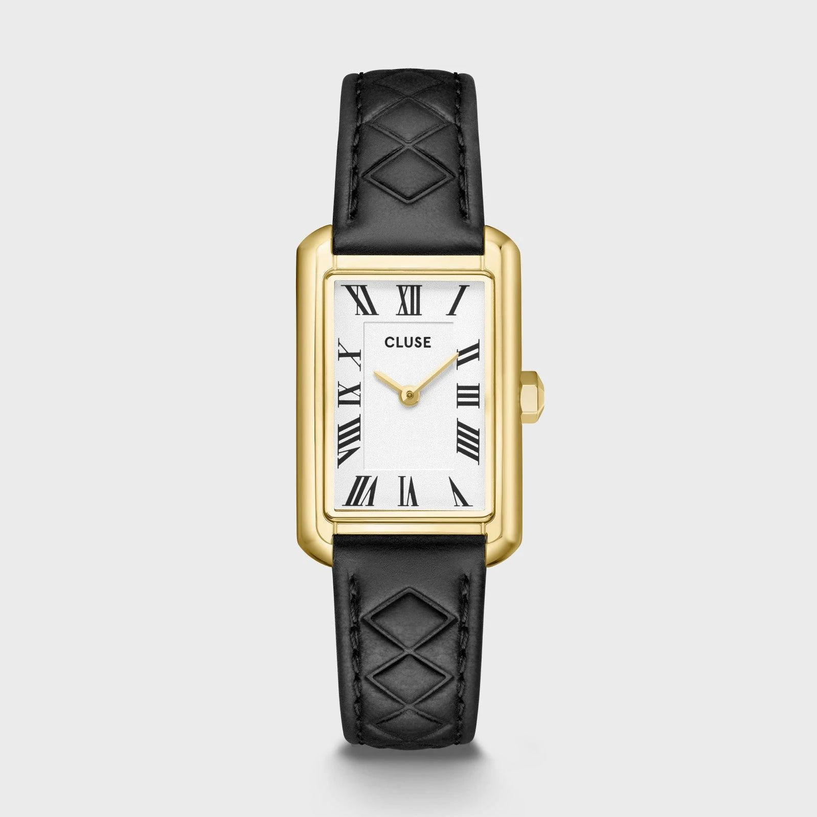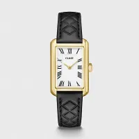 Женские часы Belisenna прямоугольной формы имеют корпус золотистого цвета диаметром 21 мм, белый циферблат и черный стеганый кожаный ремешок шириной 14 мм. Легко персонализируйте свои часы с помощью любого ремешка CLUSE шириной 14 мм.