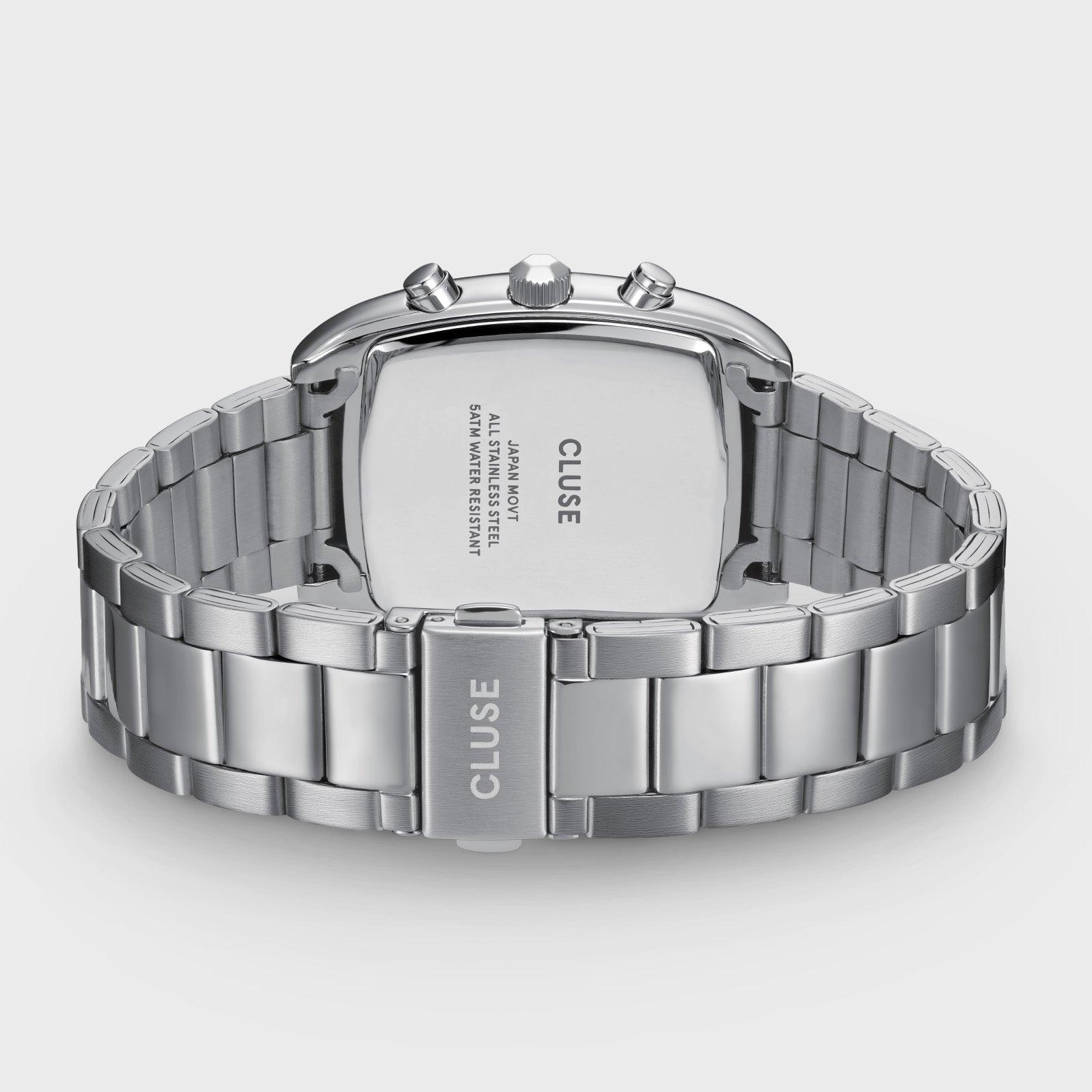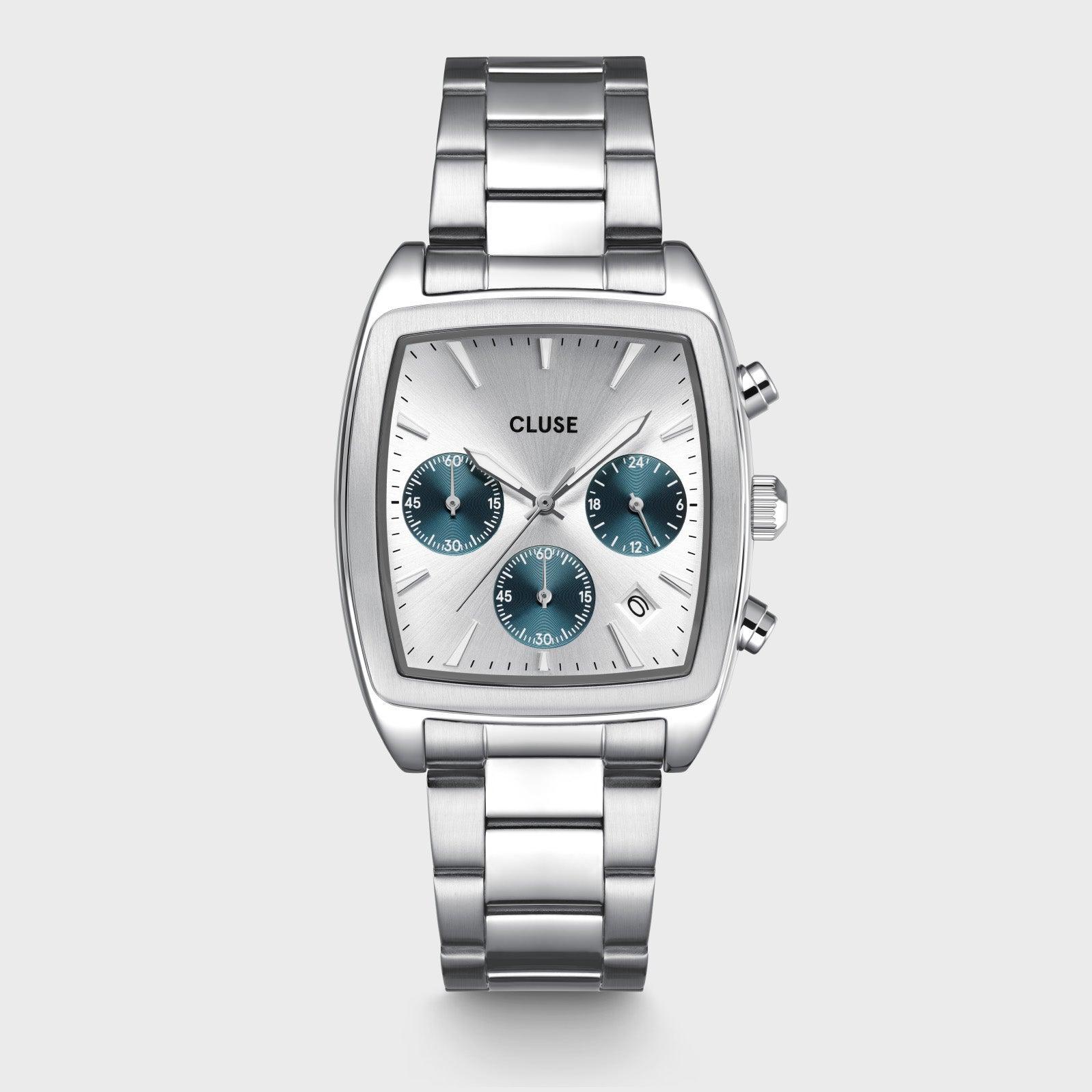 Мужские часы Quartaut Chrono сочетают в себе прочность и роскошь. Они имеют обтекаемый серебристый корпус бочкообразной формы, трёхзвенный ремешок из нержавеющей стали и серебристый циферблат с тремя синими дополнительными циферблатами. Совершенство формы обеспечивает комфорт и стиль.