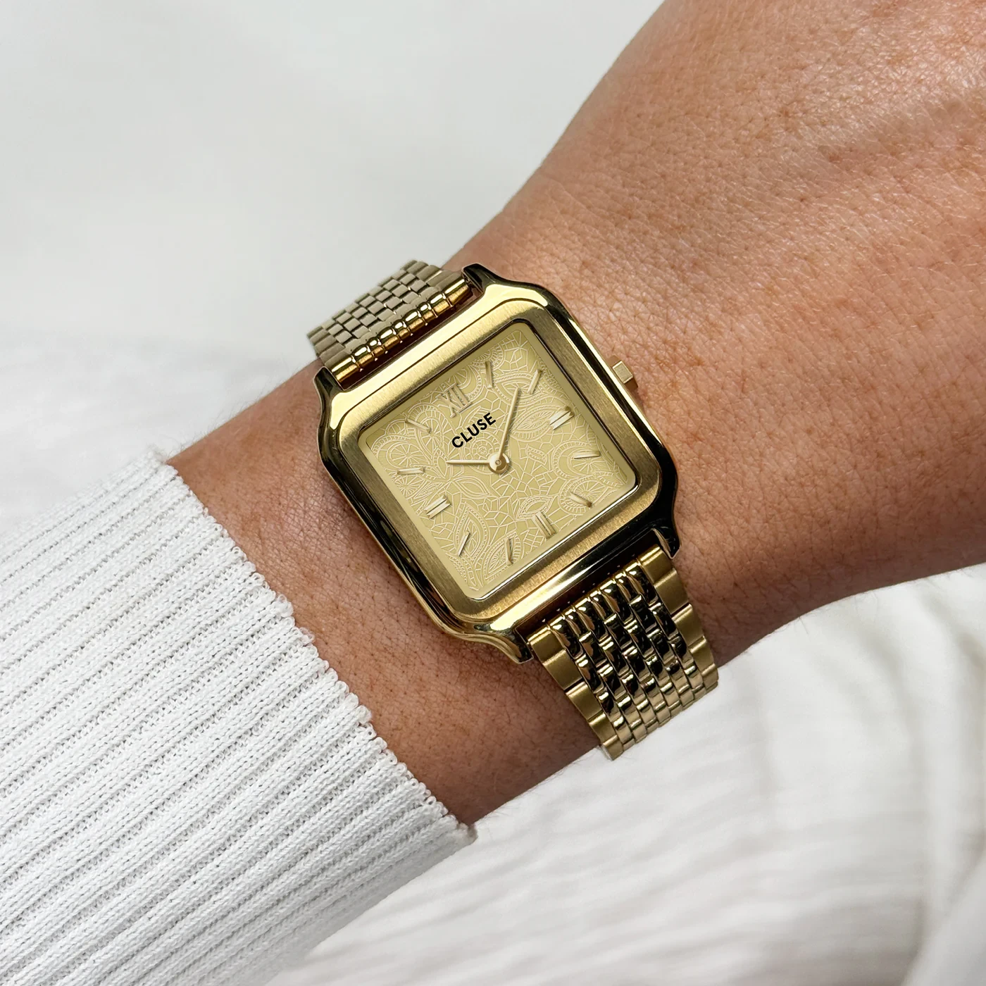 . Точный кварцевый механизм с аналоговой индикацией. В отличие от механических часов, не требуют завода и работают от батареи, показывая отклонение всего несколько секунд в месяц. Браслет из нержавеющей стали обладает высокой прочностью и износостойкостью, обеспечивая долговечность даже при активной эксплуатации. Материал устойчив к коррозии и сохраняет свой внешний вид надолго. Корпус изготовлен из высококачественной нержавеющей стали 316L с высокими антикоррозийными свойствами. Прочное, устойчивое к царапинам минеральное стекло защищает часы от повреждений. Часы являются водонепроницаемыми до 5 Бар. Цвет корпуса: Желтое золото. Цвет циферблата: Золотистый. Высота (с ушками): 28 мм. Толщина: 7.2 мм. Гарантия: 2 года.