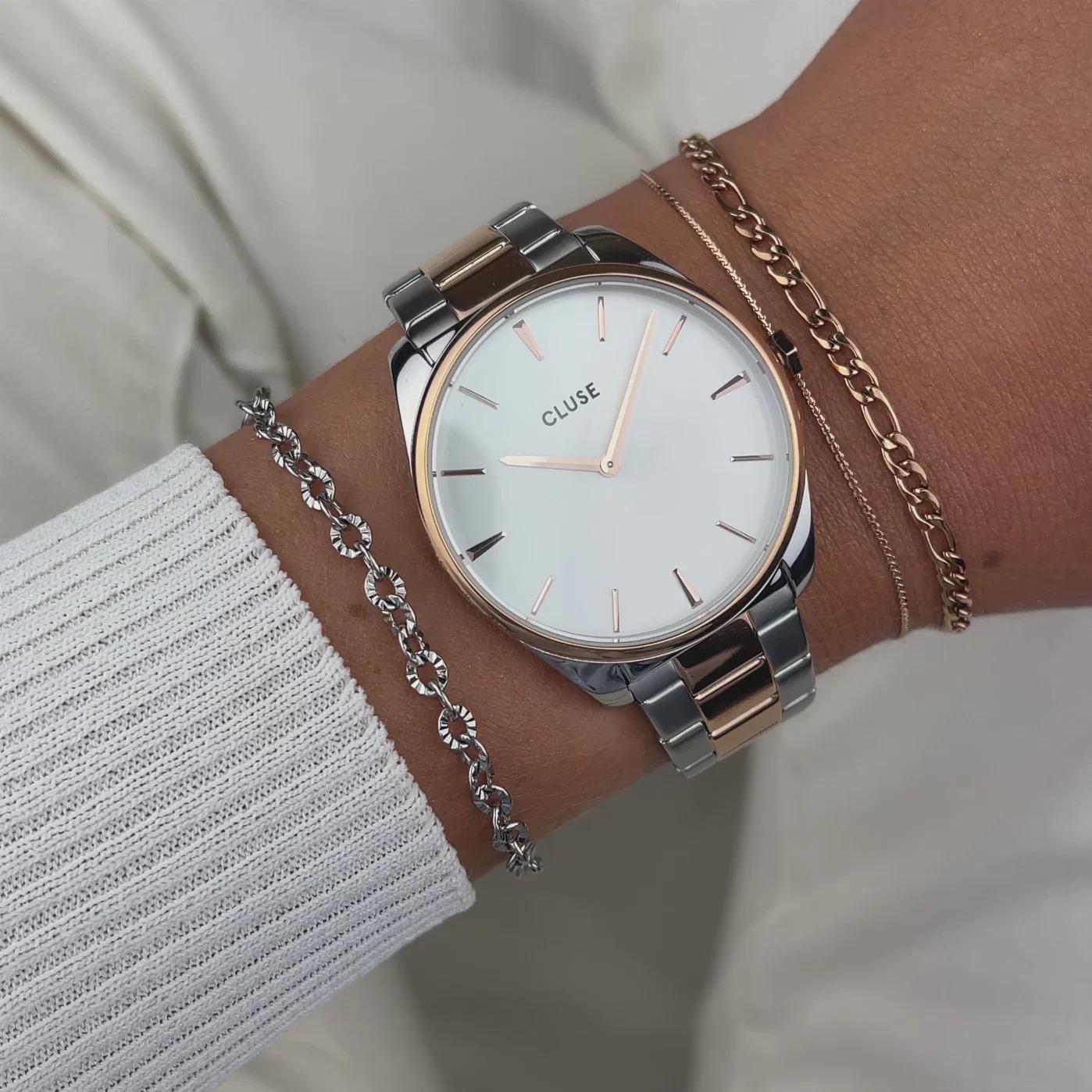 Женские наручные часы Cluse Feroce Petite CW11104. Точный кварцевый механизм с аналоговой индикацией. Корпус изготовлен из высококачественной нержавеющей стали 316L с высокими антикоррозийными свойствами. Браслет из нержавеющей стали. Прочное, устойчивое к царапинам минеральное стекло защищает часы от повреждений. Часы являются водонепроницаемыми до 5 Бар. Цвет корпуса: Серебристый. Цвет циферблата: Серебристый. Ширина (с заводной головкой): 36мм. Толщина: 7мм. Гарантия: 2 года.
