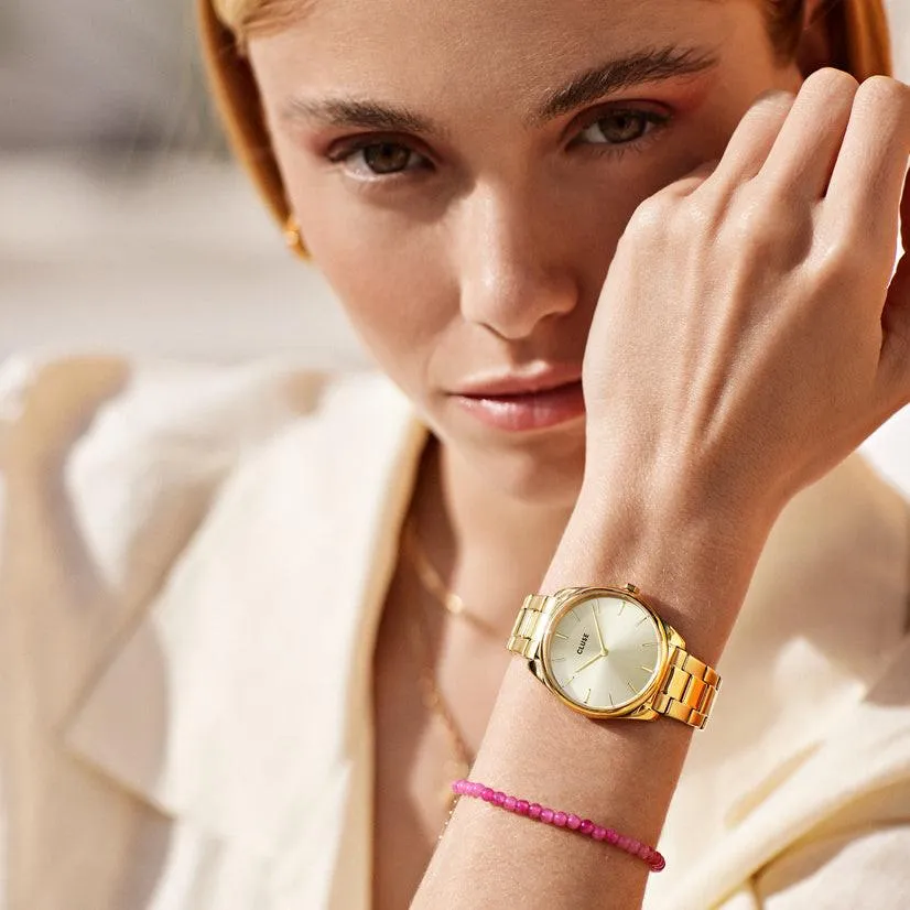 Женские наручные часы Cluse Feroce Petite CW11212. Точный кварцевый механизм с аналоговой индикацией. Корпус изготовлен из высококачественной нержавеющей стали 316L с высокими антикоррозийными свойствами. Браслет из нержавеющей стали. Прочное, устойчивое к царапинам минеральное стекло защищает часы от повреждений. Часы являются водонепроницаемыми до 5 Бар. Цвет корпуса: Желтое золото. Цвет циферблата: Золотистый. Ширина (с заводной головкой): 32мм. Толщина: 7мм. Гарантия: 2 года.