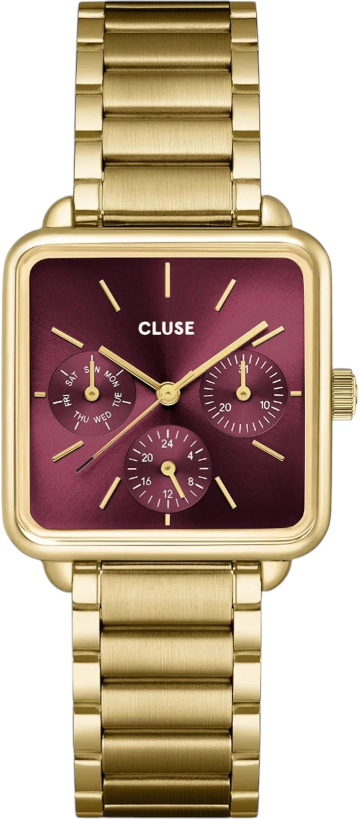 Женские наручные часы Cluse La Tetragone CG13801. Точный кварцевый механизм с аналоговой индикацией. В отличие от механических часов, не требуют завода и работают от батареи, показывая отклонение всего несколько секунд в месяц. Браслет из нержавеющей стали обладает высокой прочностью и износостойкостью, обеспечивая долговечность даже при активной эксплуатации. Материал устойчив к коррозии и сохраняет свой внешний вид надолго. Отображение времени возможно в 12-часовом или 24-часовом формате. Корпус изготовлен из высококачественной нержавеющей стали 316L с высокими антикоррозийными свойствами. Прочное, устойчивое к царапинам минеральное стекло защищает часы от повреждений. Часы являются водонепроницаемыми до 5 Бар. Цвет корпуса: Желтое золото. Цвет циферблата: Красный. Высота (с ушками): 30 мм. Толщина: 8.65 мм. Гарантия: 2 года.