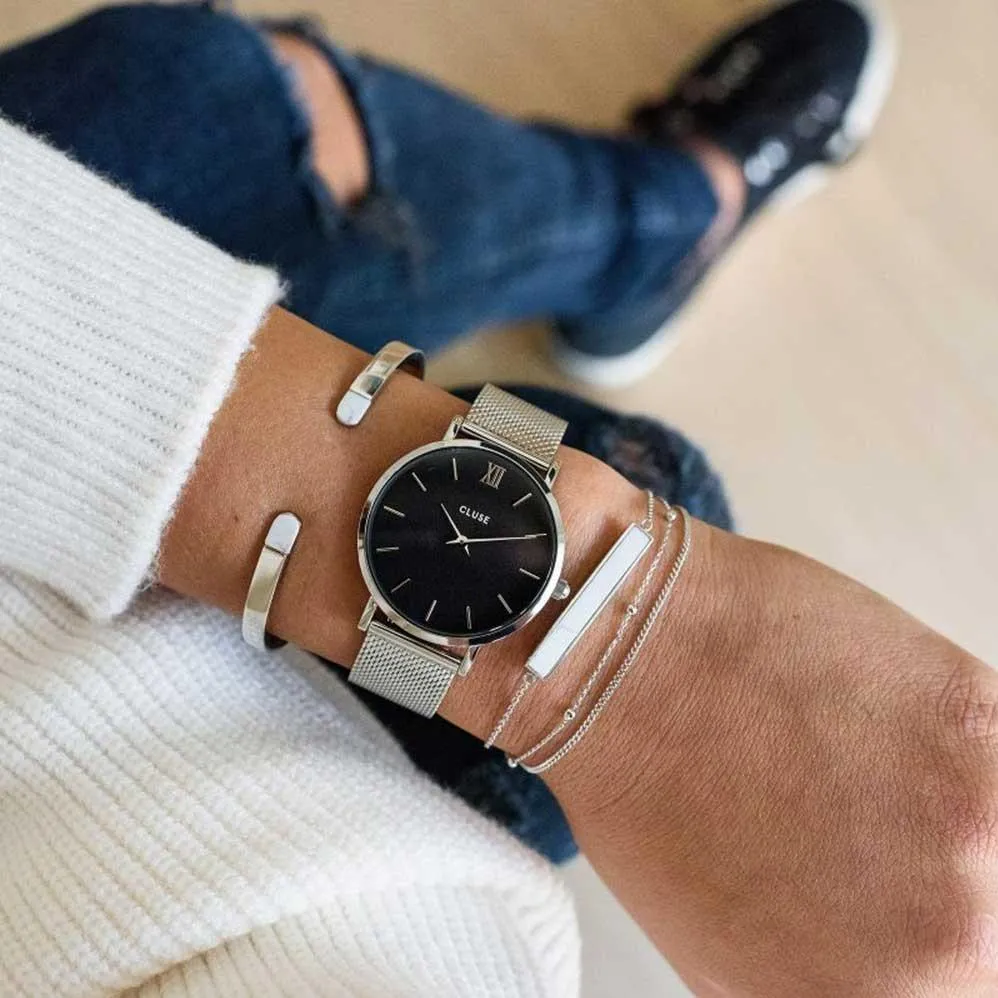 Женские наручные часы Cluse Minuit CW0101203005. Точный кварцевый механизм с аналоговой индикацией. Корпус изготовлен из высококачественной нержавеющей стали 316L с высокими антикоррозийными свойствами. Браслет из нержавеющей стали. Прочное, устойчивое к царапинам минеральное стекло защищает часы от повреждений. Часы являются водонепроницаемыми до 3 Бар. Цвет корпуса: Серебристый. Цвет циферблата: Черный. Ширина (с заводной головкой): 33мм. Толщина: 7мм. Гарантия: 2 года.