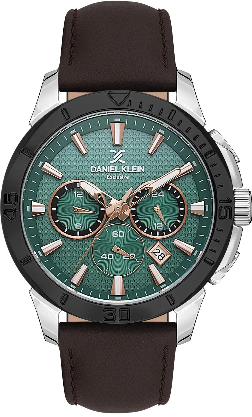 Мужские наручные часы Daniel Klein Exclusive 13893-4. Точный кварцевый механизм с аналоговой индикацией. В отличие от механических часов, не требуют завода и работают от батареи, показывая отклонение всего несколько секунд в месяц. На стрелки и отметки нанесен светонакопительный состав, благодаря этому считывать информацию с циферблата возможно и в темноте. Ремешок изготовлен из кожи. Гибкость такого ремешка позволяет точно регулировать посадку часов на руке. Отображение времени возможно в 12-часовом или 24-часовом формате. Корпус изготовлен из высококачественной часовой латуни с высокими антикоррозийными свойствами. Прочное, устойчивое к царапинам минеральное стекло защищает часы от повреждений. Часы являются водонепроницаемыми до 5 Бар. Цвет корпуса: Серебристый. Цвет циферблата: Зеленый. Высота (с ушками): 44 мм. Толщина: 12 мм. Гарантия: 1 год.