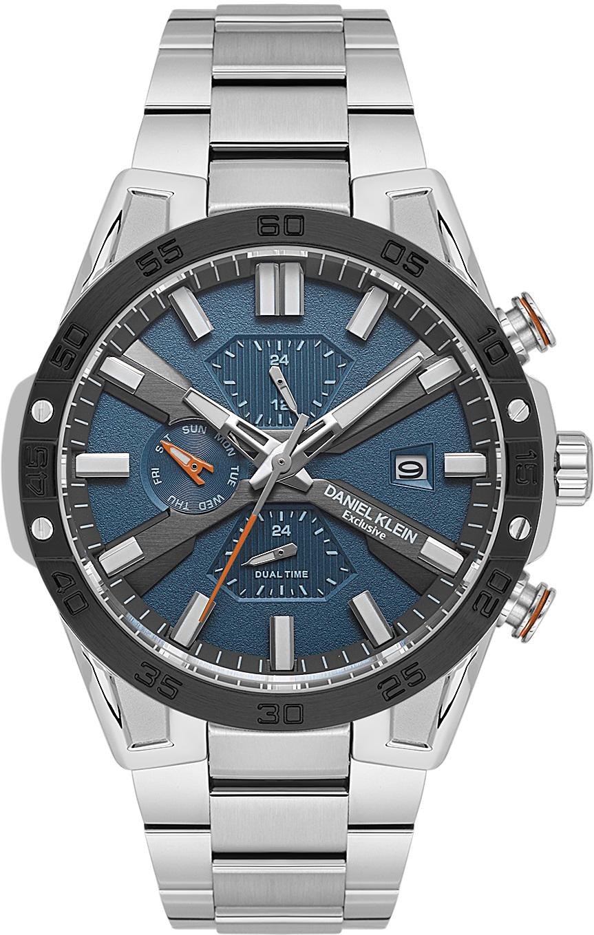 Мужские наручные часы Daniel Klein Exclusive 13974-4. Точный кварцевый механизм с аналоговой индикацией. В отличие от механических часов, не требуют завода и работают от батареи, показывая отклонение всего несколько секунд в месяц. На стрелки и отметки нанесен светонакопительный состав, благодаря этому считывать информацию с циферблата возможно и в темноте. Браслет из нержавеющей стали обладает высокой прочностью и износостойкостью, обеспечивая долговечность даже при активной эксплуатации. Материал устойчив к коррозии и сохраняет свой внешний вид надолго. Отображение времени возможно в 12-часовом или 24-часовом формате. Корпус изготовлен из высококачественной часовой латуни с высокими антикоррозийными свойствами. Прочное, устойчивое к царапинам минеральное стекло защищает часы от повреждений. Часы являются водонепроницаемыми до 5 Бар. Цвет корпуса: Серебристый. Цвет циферблата: Синий. Высота (с ушками): 47 мм. Толщина: 13 мм. Гарантия: 1 год.