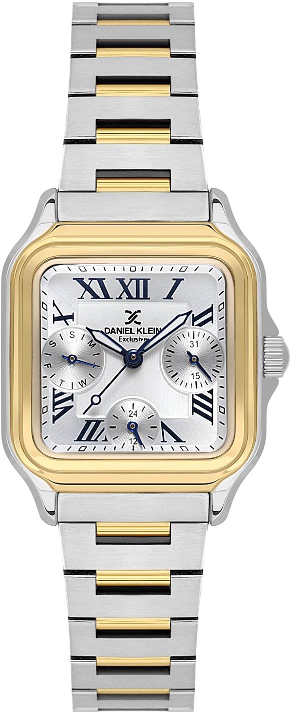 Женские наручные часы Daniel Klein Exclusive 14042-4. Точный кварцевый механизм с аналоговой индикацией. В отличие от механических часов, не требуют завода и работают от батареи, показывая отклонение всего несколько секунд в месяц. На стрелки и отметки нанесен светонакопительный состав, благодаря этому считывать информацию с циферблата возможно и в темноте. Браслет из нержавеющей стали обладает высокой прочностью и износостойкостью, обеспечивая долговечность даже при активной эксплуатации. Материал устойчив к коррозии и сохраняет свой внешний вид надолго. Отображение времени возможно в 12-часовом или 24-часовом формате. Корпус изготовлен из высококачественной часовой латуни с высокими антикоррозийными свойствами. Прочное, устойчивое к царапинам минеральное стекло защищает часы от повреждений. Часы являются водонепроницаемыми до 3 Бар. Цвет корпуса: Серебристый. Цвет циферблата: Серебристый. Высота (с ушками): 35 мм. Толщина: 10 мм. Гарантия: 1 год.
