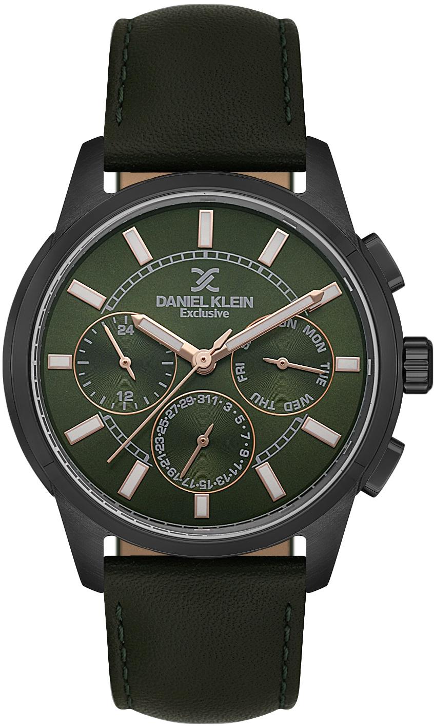 Мужские наручные часы Daniel Klein Exclusive 14209-6. Точный кварцевый механизм с аналоговой индикацией. В отличие от механических часов, не требуют завода и работают от батареи, показывая отклонение всего несколько секунд в месяц. Ремешок изготовлен из кожи. Гибкость такого ремешка позволяет точно регулировать посадку часов на руке. Отображение времени возможно в 12-часовом или 24-часовом формате. Корпус изготовлен из высококачественной часовой латуни с высокими антикоррозийными свойствами. Прочное, устойчивое к царапинам минеральное стекло защищает часы от повреждений. Часы являются водонепроницаемыми до 5 Бар. Цвет корпуса: Черный. Цвет циферблата: Зеленый. Высота (с ушками): 44 мм. Гарантия: 1 год.