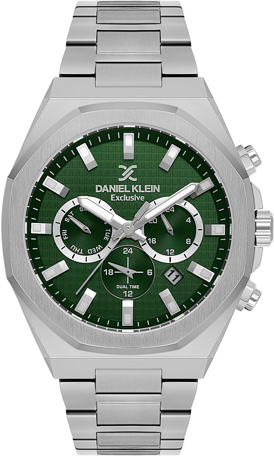 Мужские наручные часы Daniel Klein Exclusive 14218-2. Точный кварцевый механизм с аналоговой индикацией. В отличие от механических часов, не требуют завода и работают от батареи, показывая отклонение всего несколько секунд в месяц. Браслет из нержавеющей стали обладает высокой прочностью и износостойкостью, обеспечивая долговечность даже при активной эксплуатации. Материал устойчив к коррозии и сохраняет свой внешний вид надолго. Отображение времени возможно в 12-часовом или 24-часовом формате. Корпус изготовлен из высококачественной часовой латуни с высокими антикоррозийными свойствами. Прочное, устойчивое к царапинам минеральное стекло защищает часы от повреждений. Часы являются водонепроницаемыми до 5 Бар. Цвет корпуса: Серебристый. Цвет циферблата: Зеленый. Высота (с ушками): 44 мм. Гарантия: 1 год.