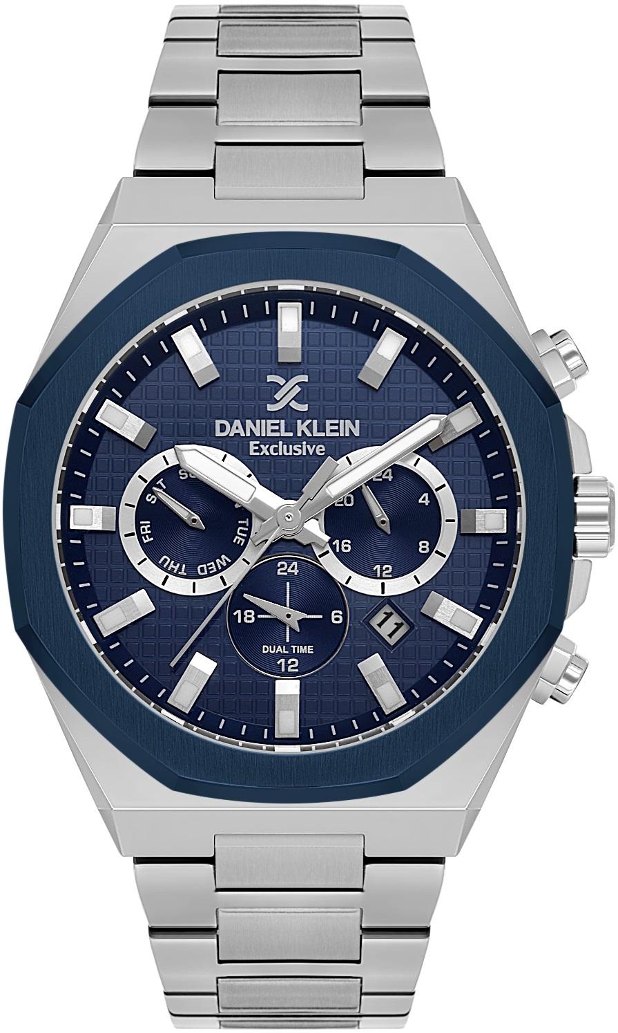 Мужские наручные часы Daniel Klein Exclusive 14218-3. Точный кварцевый механизм с аналоговой индикацией. В отличие от механических часов, не требуют завода и работают от батареи, показывая отклонение всего несколько секунд в месяц. Браслет из нержавеющей стали обладает высокой прочностью и износостойкостью, обеспечивая долговечность даже при активной эксплуатации. Материал устойчив к коррозии и сохраняет свой внешний вид надолго. Отображение времени возможно в 12-часовом или 24-часовом формате. Корпус изготовлен из высококачественной часовой латуни с высокими антикоррозийными свойствами. Прочное, устойчивое к царапинам минеральное стекло защищает часы от повреждений. Часы являются водонепроницаемыми до 5 Бар. Цвет корпуса: Серебристый. Цвет циферблата: Синий. Высота (с ушками): 44 мм. Гарантия: 1 год.