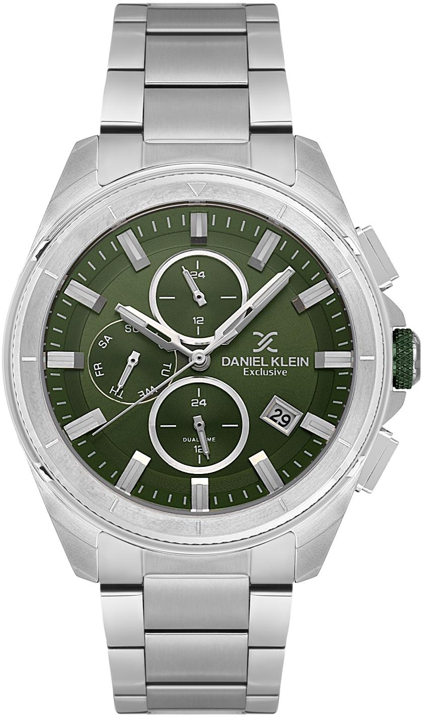 Мужские наручные часы Daniel Klein Exclusive 14224-3. Точный кварцевый механизм с аналоговой индикацией. В отличие от механических часов, не требуют завода и работают от батареи, показывая отклонение всего несколько секунд в месяц. Браслет из нержавеющей стали обладает высокой прочностью и износостойкостью, обеспечивая долговечность даже при активной эксплуатации. Материал устойчив к коррозии и сохраняет свой внешний вид надолго. Отображение времени возможно в 12-часовом или 24-часовом формате. Корпус изготовлен из высококачественной часовой латуни с высокими антикоррозийными свойствами. Прочное, устойчивое к царапинам минеральное стекло защищает часы от повреждений. Часы являются водонепроницаемыми до 5 Бар. Цвет корпуса: Серебристый. Цвет циферблата: Зеленый. Высота (с ушками): 44 мм. Гарантия: 1 год.