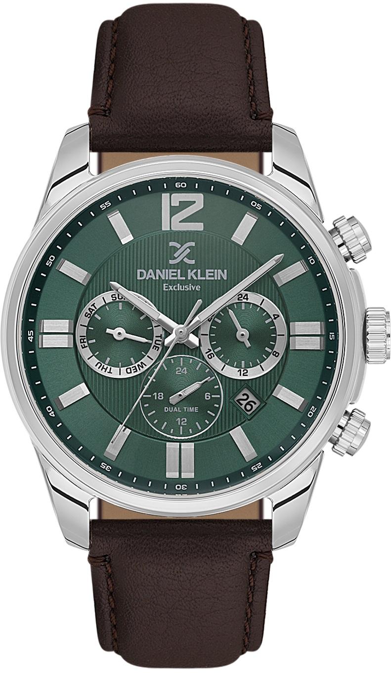 Мужские наручные часы Daniel Klein Exclusive 14231-4. Точный кварцевый механизм с аналоговой индикацией. В отличие от механических часов, не требуют завода и работают от батареи, показывая отклонение всего несколько секунд в месяц. Ремешок изготовлен из кожи. Гибкость такого ремешка позволяет точно регулировать посадку часов на руке. Отображение времени возможно в 12-часовом или 24-часовом формате. Корпус изготовлен из высококачественной часовой латуни с высокими антикоррозийными свойствами. Прочное, устойчивое к царапинам минеральное стекло защищает часы от повреждений. Часы являются водонепроницаемыми до 5 Бар. Цвет корпуса: Серебристый. Цвет циферблата: Зеленый. Высота (с ушками): 44 мм. Гарантия: 1 год.