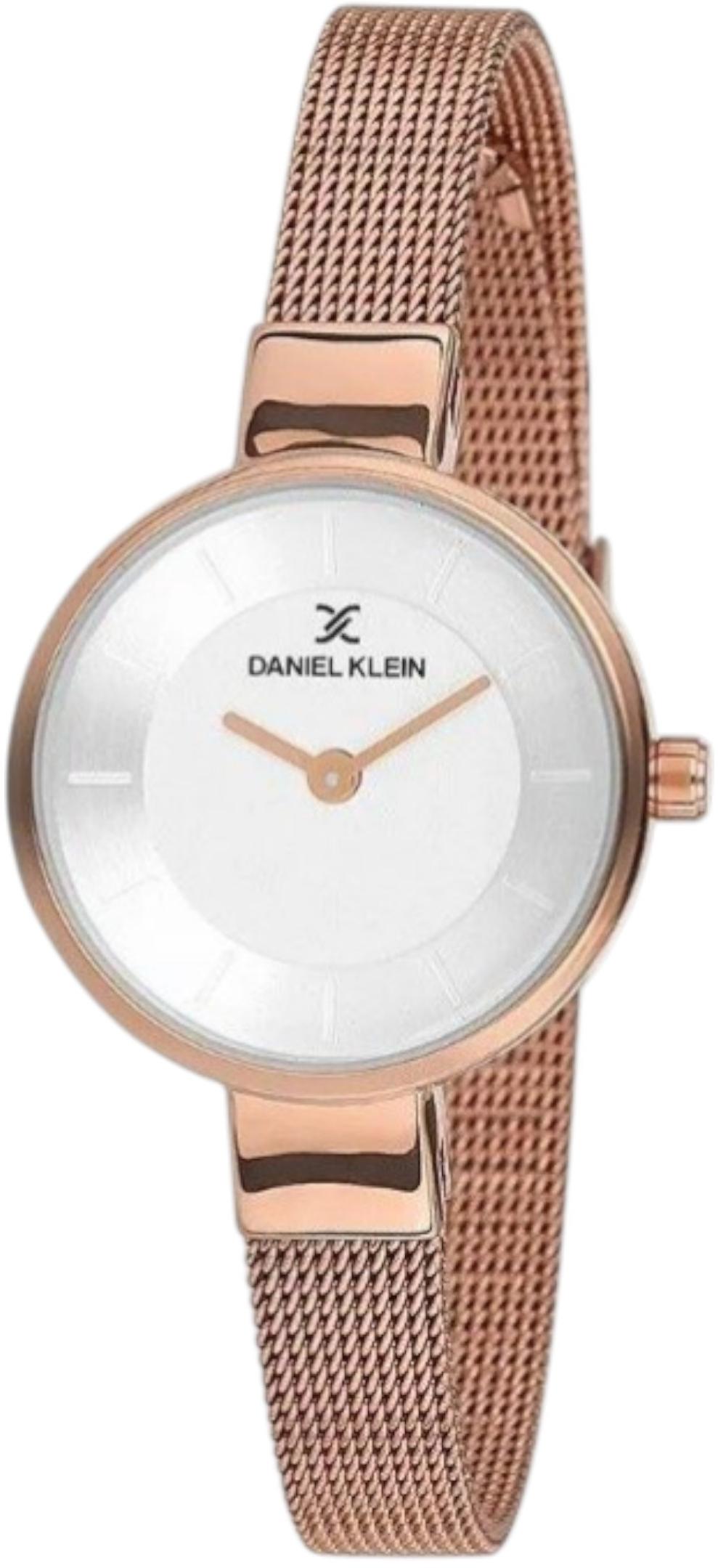 Женские наручные часы Daniel Klein Premium 11696-4. Точный кварцевый механизм с аналоговой индикацией. В отличие от механических часов, не требуют завода и работают от батареи, показывая отклонение всего несколько секунд в месяц. Браслет из нержавеющей стали обладает высокой прочностью и износостойкостью, обеспечивая долговечность даже при активной эксплуатации. Материал устойчив к коррозии и сохраняет свой внешний вид надолго. Корпус изготовлен из высококачественной часовой латуни с высокими антикоррозийными свойствами. Прочное, устойчивое к царапинам минеральное стекло защищает часы от повреждений. Часы являются водонепроницаемыми до 3 Бар. Цвет корпуса: Розовое золото. Цвет циферблата: Белый. Высота (с ушками): 37.2 мм. Толщина: 8.2 мм. Гарантия: 1 год.