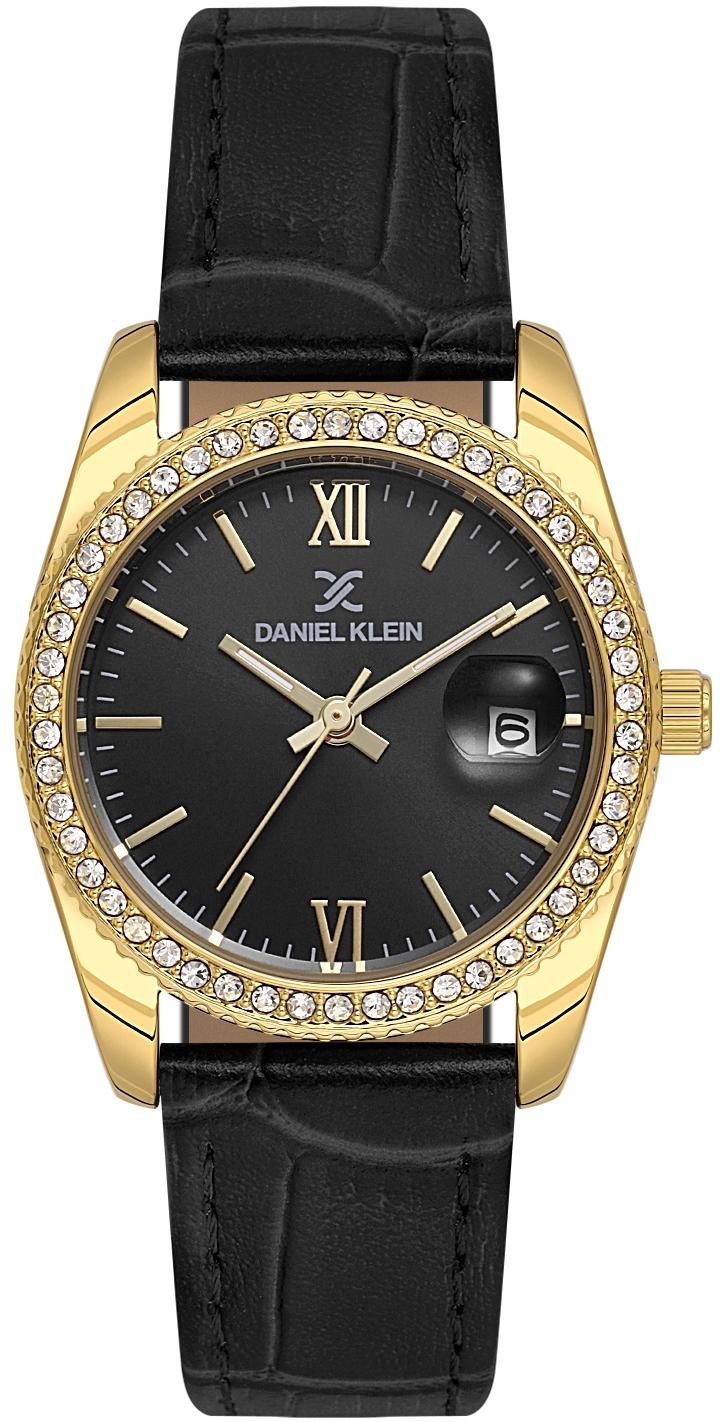Женские наручные часы Daniel Klein Premium 14030-2. Точный кварцевый механизм с аналоговой индикацией. В отличие от механических часов, не требуют завода и работают от батареи, показывая отклонение всего несколько секунд в месяц. На стрелки и отметки нанесен светонакопительный состав, благодаря этому считывать информацию с циферблата возможно и в темноте. Ремешок изготовлен из кожи. Гибкость такого ремешка позволяет точно регулировать посадку часов на руке. Корпус изготовлен из высококачественной часовой латуни с высокими антикоррозийными свойствами. Прочное, устойчивое к царапинам минеральное стекло защищает часы от повреждений. Часы являются водонепроницаемыми до 3 Бар. Цвет корпуса: Желтое золото. Цвет циферблата: Черный. Высота (с ушками): 30 мм. Толщина: 8 мм. Гарантия: 1 год.