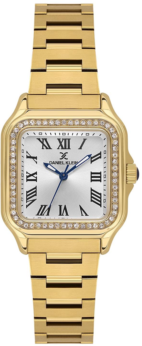 Женские наручные часы Daniel Klein Premium 14040-3. Точный кварцевый механизм с аналоговой индикацией. В отличие от механических часов, не требуют завода и работают от батареи, показывая отклонение всего несколько секунд в месяц. На стрелки и отметки нанесен светонакопительный состав, благодаря этому считывать информацию с циферблата возможно и в темноте. Браслет из нержавеющей стали обладает высокой прочностью и износостойкостью, обеспечивая долговечность даже при активной эксплуатации. Материал устойчив к коррозии и сохраняет свой внешний вид надолго. Корпус изготовлен из высококачественной часовой латуни с высокими антикоррозийными свойствами. Прочное, устойчивое к царапинам минеральное стекло защищает часы от повреждений. Часы являются водонепроницаемыми до 3 Бар. Цвет корпуса: Желтое золото. Цвет циферблата: Серебристый. Высота (с ушками): 28 мм. Толщина: 9 мм. Гарантия: 1 год.
