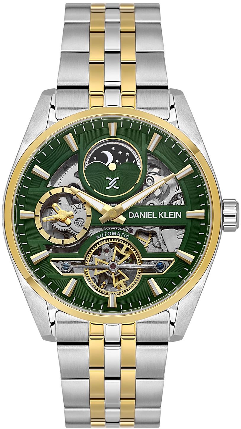 Мужские наручные часы Daniel Klein Skeleton 14266-3. Механические с автоподзаводом. Пружина механизма заводится автоматически благодаря естественным движениям владельца в процессе ежедневной носки часов. Браслет из нержавеющей стали обладает высокой прочностью и износостойкостью, обеспечивая долговечность даже при активной эксплуатации. Материал устойчив к коррозии и сохраняет свой внешний вид надолго. Корпус изготовлен из высококачественной часовой латуни с высокими антикоррозийными свойствами. Прочное, устойчивое к царапинам минеральное стекло защищает часы от повреждений. Часы являются водонепроницаемыми до 5 Бар. Цвет корпуса: Серебристый. Цвет циферблата: Зеленый. Высота (с ушками): 43 мм. Гарантия: 1 год.