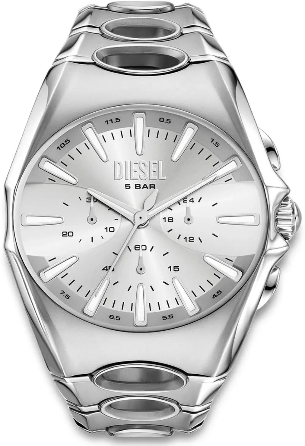 Мужские наручные часы Diesel D-Curve DZ4694. Точный кварцевый механизм с аналоговой индикацией. В отличие от механических часов, не требуют завода и работают от батареи, показывая отклонение всего несколько секунд в месяц. Браслет из нержавеющей стали обладает высокой прочностью и износостойкостью, обеспечивая долговечность даже при активной эксплуатации. Материал устойчив к коррозии и сохраняет свой внешний вид надолго. Функция хронографа. Корпус изготовлен из высококачественной нержавеющей стали 316L с высокими антикоррозийными свойствами. Прочное, устойчивое к царапинам минеральное стекло защищает часы от повреждений. Часы являются водонепроницаемыми до 5 Бар. Цвет корпуса: Серебристый. Цвет циферблата: Серебристый. Толщина: 12 мм. Гарантия: 2 года.