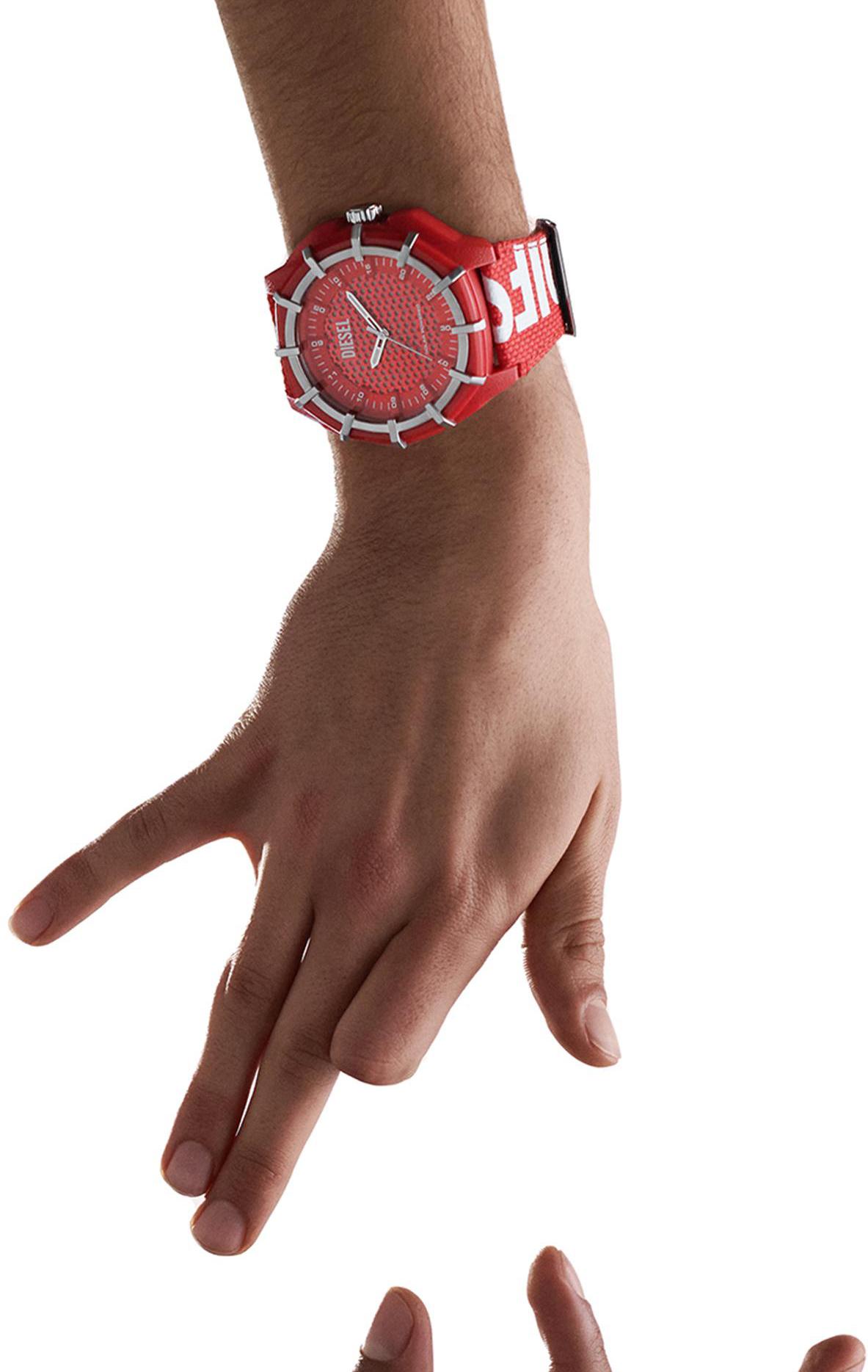 Мужские наручные часы Diesel Framed DZ4621. Точный кварцевый механизм с аналоговой индикацией. Полимерный ремешок. Натуральный полимерный материал является идеальным для изготовления ремешка благодаря своей чрезвычайной прочности и гибкости. Текстильный ремешок. Солнечная батарейка. Солнечная подзаряжающаяся батарейка обеспечивает питание часов для работы. Полимерный ремешок. Натуральный полимерный материал является идеальным для изготовления ремешка благодаря своей чрезвычайной прочности и гибкости. Прочное, устойчивое к царапинам минеральное стекло защищает часы от повреждений. Часы являются водонепроницаемыми до 5 Бар. Цвет циферблата: Красный. Цвет корпуса: Красный. На стрелки и отметки нанесен светонакопительный состав, благодаря этому считывать информацию с циферблата возможно и в темноте. Толщина: 13 мм. Гарантия: 2 года.