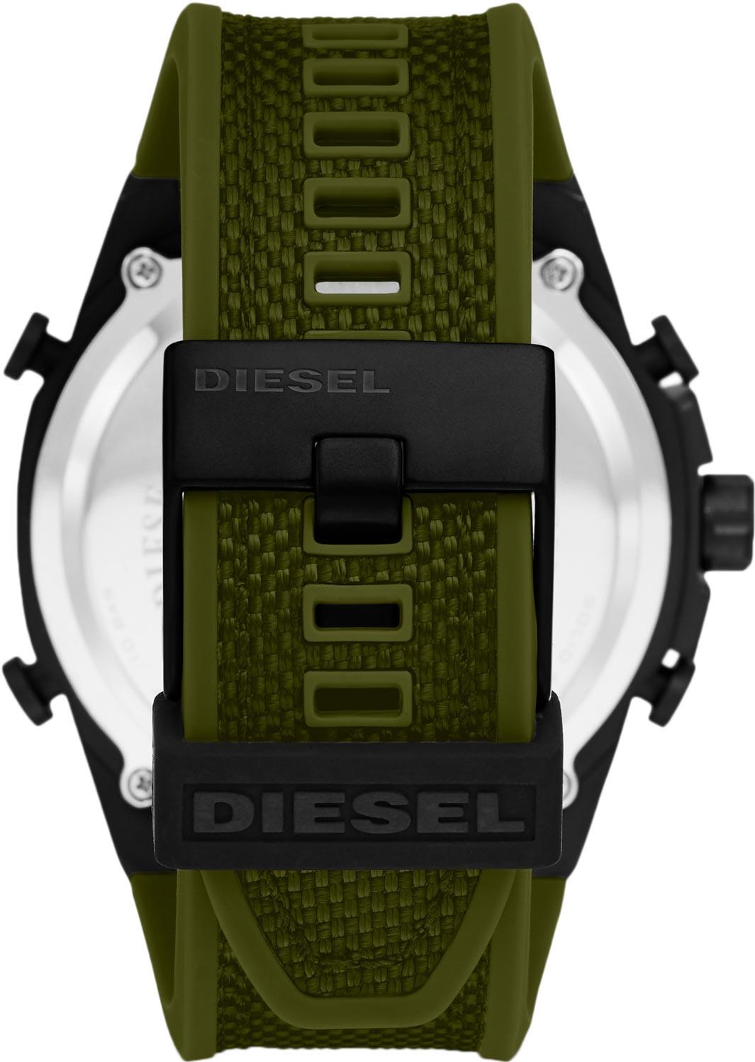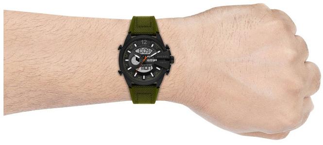 Мужские наручные часы Diesel Mega Chief DZ4549. Точный кварцевый механизм с аналого-цифровой индикацией. Корпус изготовлен из высококачественной нержавеющей стали 316L с высокими антикоррозийными свойствами. На стрелки и отметки нанесен светонакопительный состав, благодаря этому считывать информацию с циферблата возможно и в темноте. На циферблате отображается текущее число, месяц и день недели. Функция хронографа. Отображение времени возможно в 12-часовом или 24-часовом формате. Текстильный ремешок. Прочное, устойчивое к царапинам минеральное стекло защищает часы от повреждений. Часы являются водонепроницаемыми до 10 Бар. Цвет корпуса: Черный. Цвет циферблата: Черный. Гарантия: 2 года.