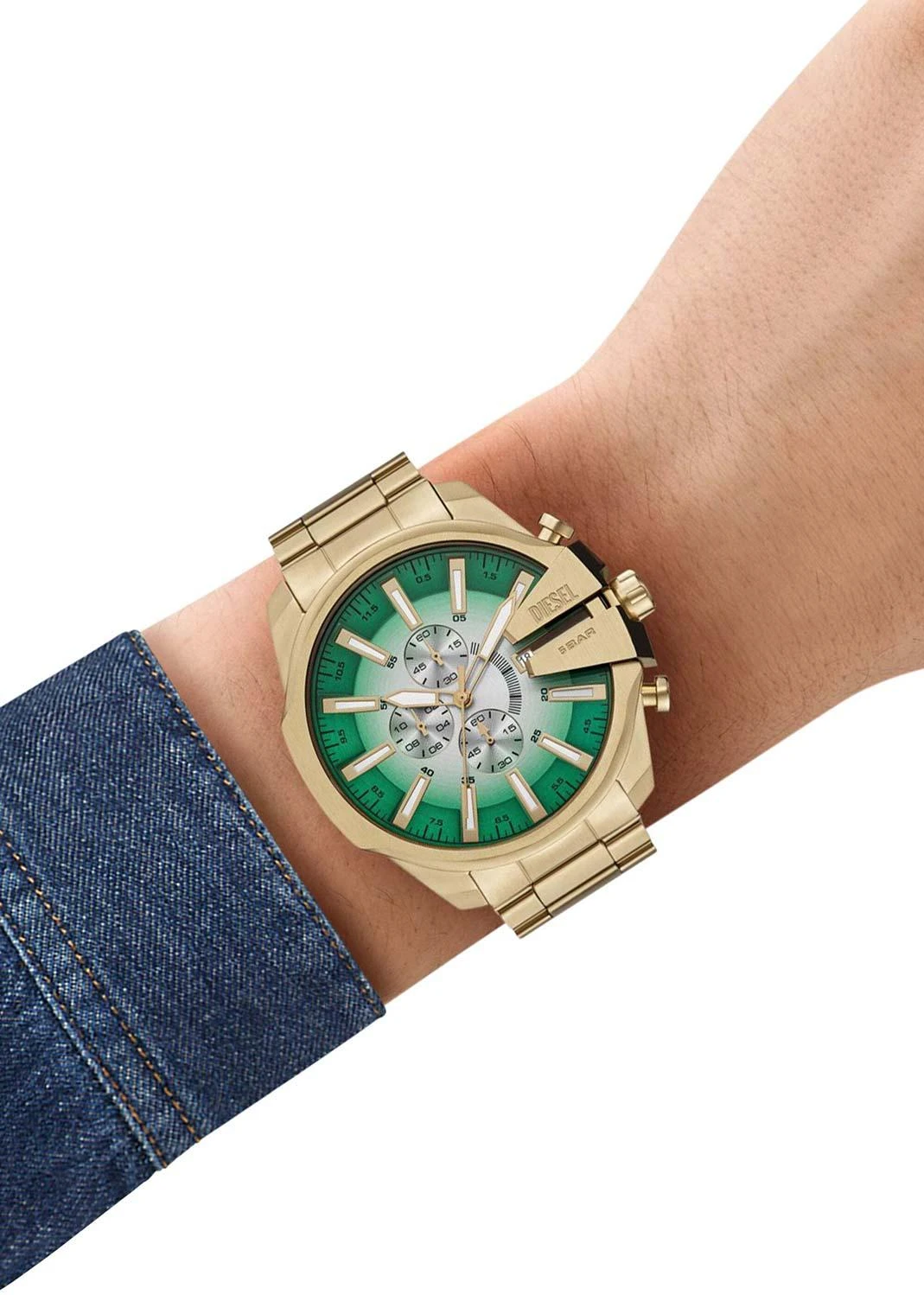 Мужские часы Diesel Mega Chief DZ4684 — это смелый акцент в вашей коллекции. Модель с массивным 48-мм корпусом из черной стали (PVD-покрытие) привлекает внимание насыщенным зеленым циферблатом. Высокоточный кварцевый механизм и хронограф подчеркивают функциональность, а люминесцентное покрытие стрелок обеспечивает отличную видимость в любое время суток. Минеральное стекло защищает от царапин, а водонепроницаемость 5 ATM (50 метров) делает часы надежным спутником в повседневной жизни. Стальной браслет с раскладывающейся застежкой завершает образ в стиле Diesel.