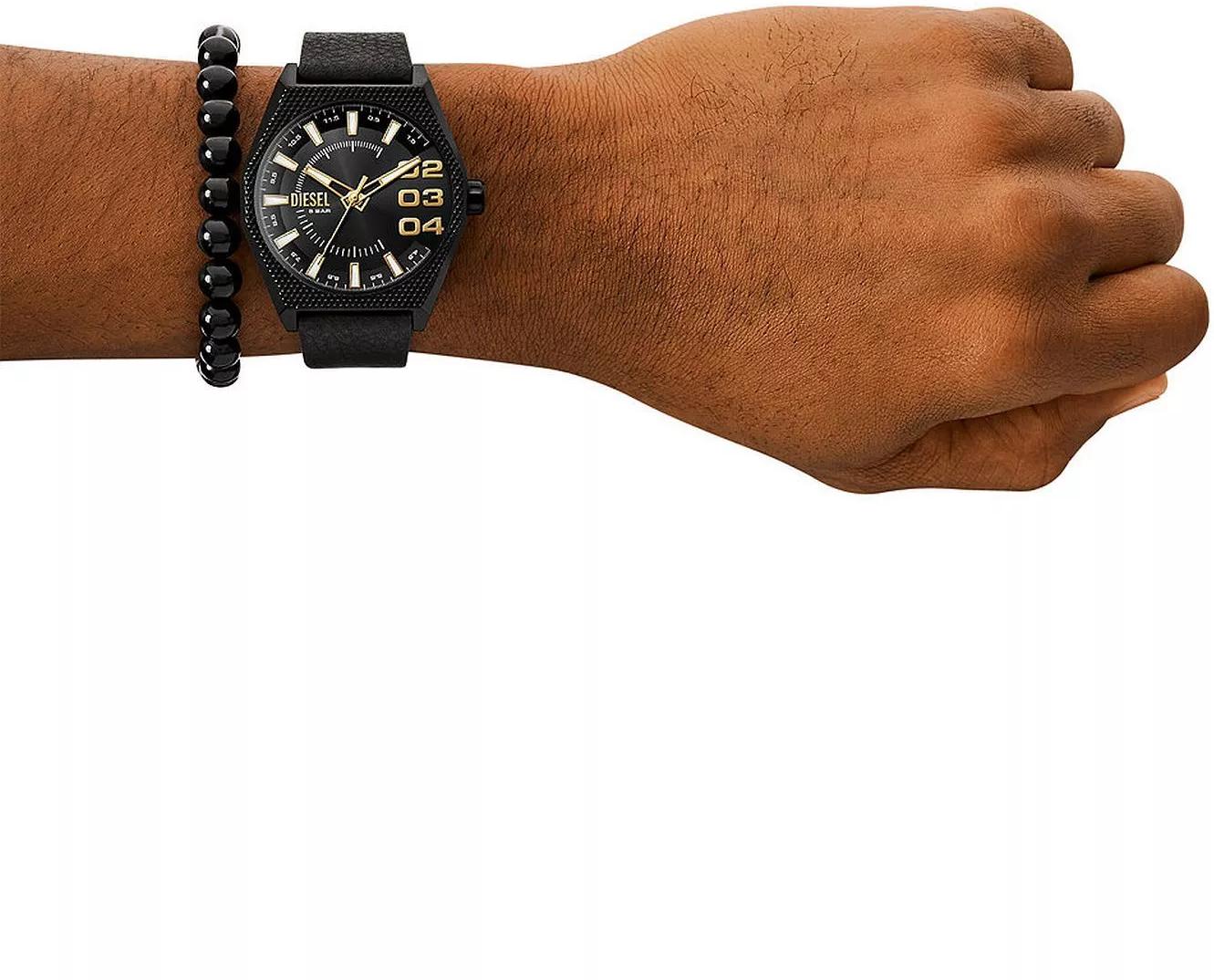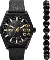Мужские наручные часы Diesel Scraper DZ2210SET. Точный кварцевый механизм с аналоговой индикацией. Ремешок изготовлен из кожи. Браслет из нержавеющей стали. Прочное, устойчивое к царапинам минеральное стекло защищает часы от повреждений. Часы являются водонепроницаемыми до 5 Бар. Цвет циферблата: Черный. Цвет корпуса: Черный. На стрелки и отметки нанесен светонакопительный состав, благодаря этому считывать информацию с циферблата возможно и в темноте. Толщина: 10 мм. Гарантия: 2 года.