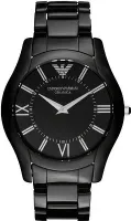 Мужские наручные часы в классическом исполнении, без секундной стрелки с римскими цифрами на черном керамическом браслете.