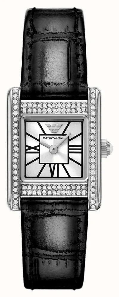 Модель Emporio Armani Classic AR11660 — это эталон сдержанной роскоши. Мерцающий серебристый циферблат, украшенный кристаллами, заключен в классический круглый корпус. Элегантный черный кожаный ремешок подчеркивает дизайн, обеспечивая комфорт и универсальность. Высокоточный кварцевый механизм, минеральное стекло и водозащита до 50 метров делают эту модель идеальным выбором для любого случая — от деловых встреч до особых моментов.