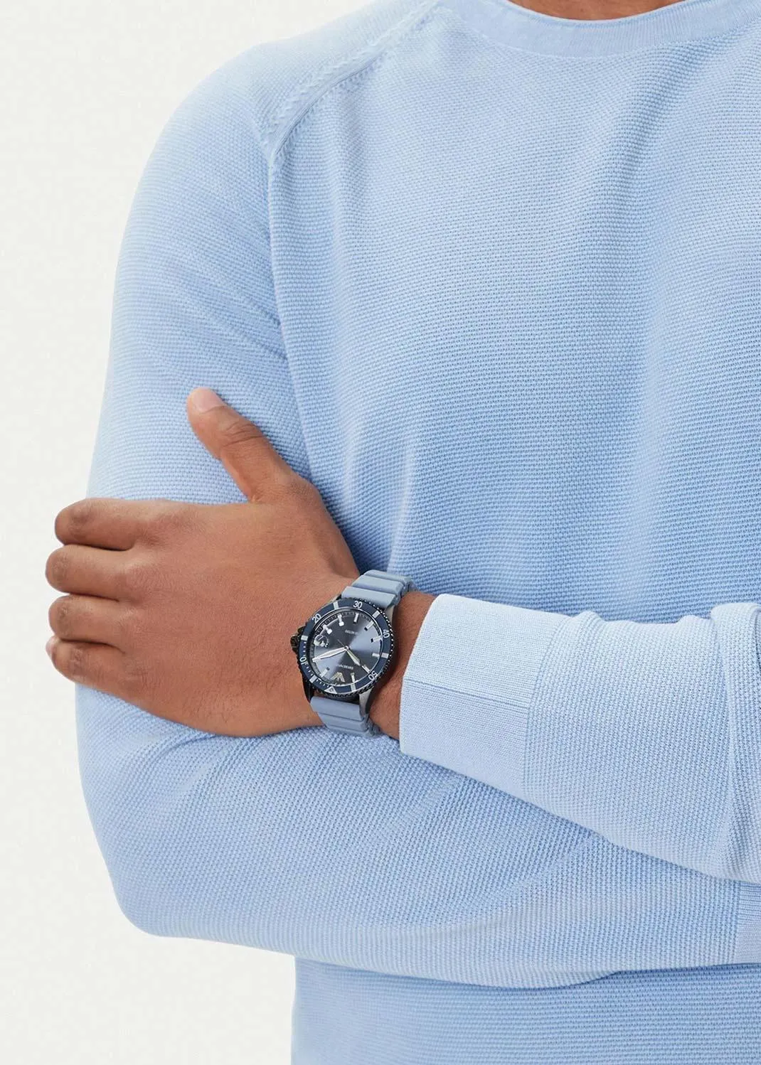 Эти мужские наручные часы сочетают в себе прочность и элегантность. Модель оснащена круглым стальным корпусом и рифленым безелем с минутной шкалой. Циферблат, выполненный по технологии «Sunray», играет на свету, как солнечные лучи, а дата отображается в удобном окошке на 3 часах с увеличительным стеклом. Для полной защищенности модель имеет рифленую заводную головку, завинчивающуюся заднюю крышку и комплектуется удобным силиконовым ремешком с классической застежкой.