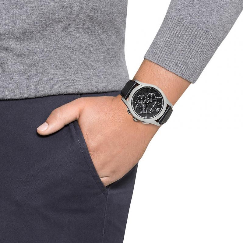 Коллекция Valente, Браслет/Ремень: черный из кожи теленка, Диаметр корпуса: 44,5, Калибр: MIYOTA VD53B, Корпус: нерж. сталь, Механизм: кварцевый механизм, Пол: мужские, Стекло: минеральное, Функции: дата, хронограф, Циферблат: черный