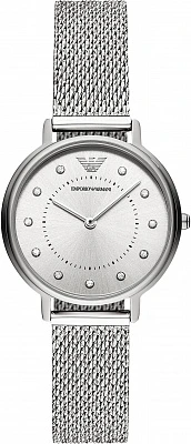 Женские наручные часы Emporio Armani Classics AR7361. Точный кварцевый механизм с аналоговой индикацией. Корпус изготовлен из высококачественной нержавеющей стали 316L с высокими антикоррозийными свойствами. Браслет из нержавеющей стали. Прочное, устойчивое к царапинам минеральное стекло защищает часы от повреждений. Часы являются водонепроницаемыми до 3 Бар. Цвет циферблата: Серебристый. Ширина (с заводной головкой): 28мм. Толщина: 8мм. Гарантия: 2 года.