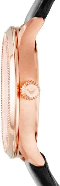 Кварцевые часы. Калибр Miyota GL 30. 12 часовой формат времени. Перламутровый циферблат украшен кристаллами Swarovski. Корпус из нержавеющей стали с розовой позолотой. Минеральное стекло. Кожаный ремень. Диаметр 26 мм.