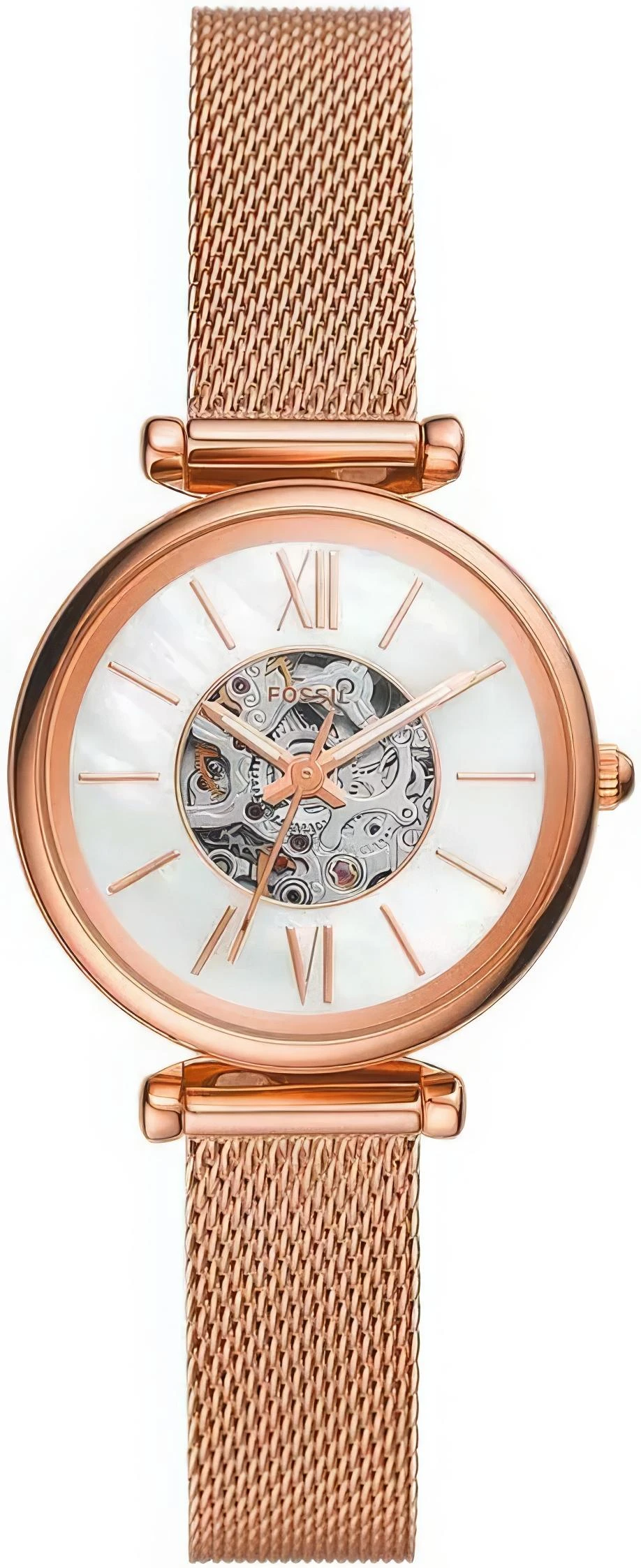 Женские наручные часы Fossil Carlie Mini ME3188. Механические с автоподзаводом. Пружина механизма заводится автоматически благодаря естественным движениям владельца в процессе ежедневной носки часов. Браслет из нержавеющей стали. Браслет из нержавеющей стали. Прочное, устойчивое к царапинам минеральное стекло защищает часы от повреждений. Часы являются водонепроницаемыми до 5 Бар. Цвет циферблата: Розовое золото. Цвет корпуса: Перламутровый. Толщина: 12 мм. Гарантия: 2 года.