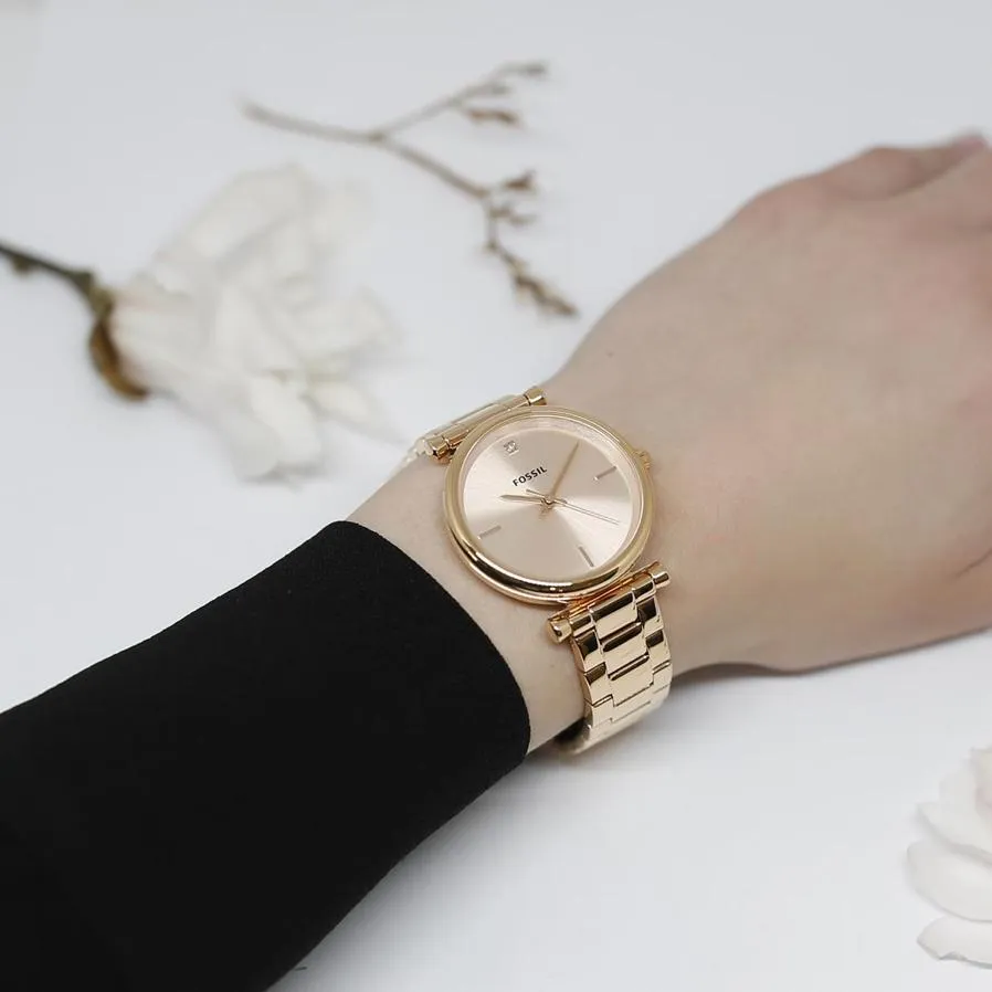 Женские наручные часы Fossil Dress ES4441. Точный кварцевый механизм с аналоговой индикацией. Корпус изготовлен из высококачественной нержавеющей стали 316L с высокими антикоррозийными свойствами. Браслет из нержавеющей стали. Прочное, устойчивое к царапинам минеральное стекло защищает часы от повреждений. Часы являются водонепроницаемыми до 3 Бар. Цвет корпуса: Желтое золото. Цвет циферблата: Золотистый. Ширина (с заводной головкой): 36мм. Толщина: 9мм. Гарантия: 2 года.