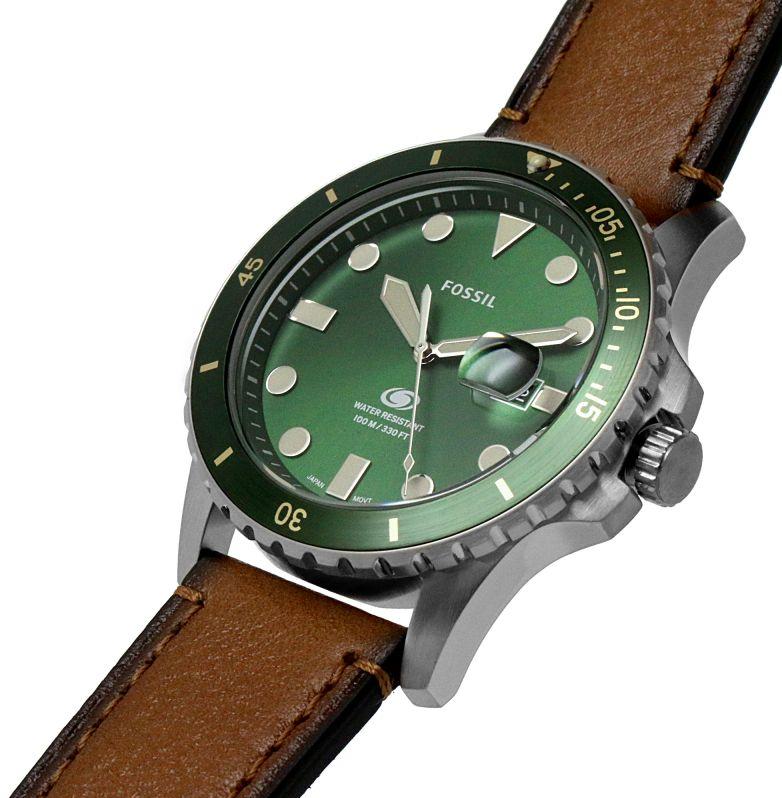 Мужские наручные часы Fossil Dress FS5946. Точный кварцевый механизм с аналоговой индикацией. Ремешок изготовлен из кожи. Браслет из нержавеющей стали. Прочное, устойчивое к царапинам минеральное стекло защищает часы от повреждений. На циферблате отображается текущее число месяца. Часы являются водонепроницаемыми до 10 Бар. Цвет циферблата: Зеленый. Цвет циферблата: Серебристый. Цвет корпуса: Зеленый. На стрелки и отметки нанесен светонакопительный состав, благодаря этому считывать информацию с циферблата возможно и в темноте. Толщина: 12 мм. Гарантия: 2 года.