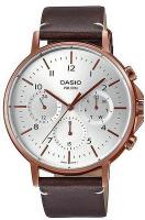 Мужские часы-хронограф с массивным 44-миллиметровым корпусом из черной нержавеющей стали сочетают в себе спортивный функционал и стильную эстетику. Модель с коричневым циферблатом оснащена тремя дополнительными счетчиками для измерения 60-секундных, 30-минутных и 24-часовых интервалов, а фиксированный черный безель подчеркивает динамичный характер часов. Минеральное стекло обеспечивает защиту от царапин, а водонепроницаемость 5 ATM (50 метров) позволяет использовать часы во время плавания. Коричневый кожаный ремешок шириной 22 мм с классической пряжкой дополнен стильным плетеным браслетом в комплекте, создавая универсальный образ для повседневной носки и активного отдыха.